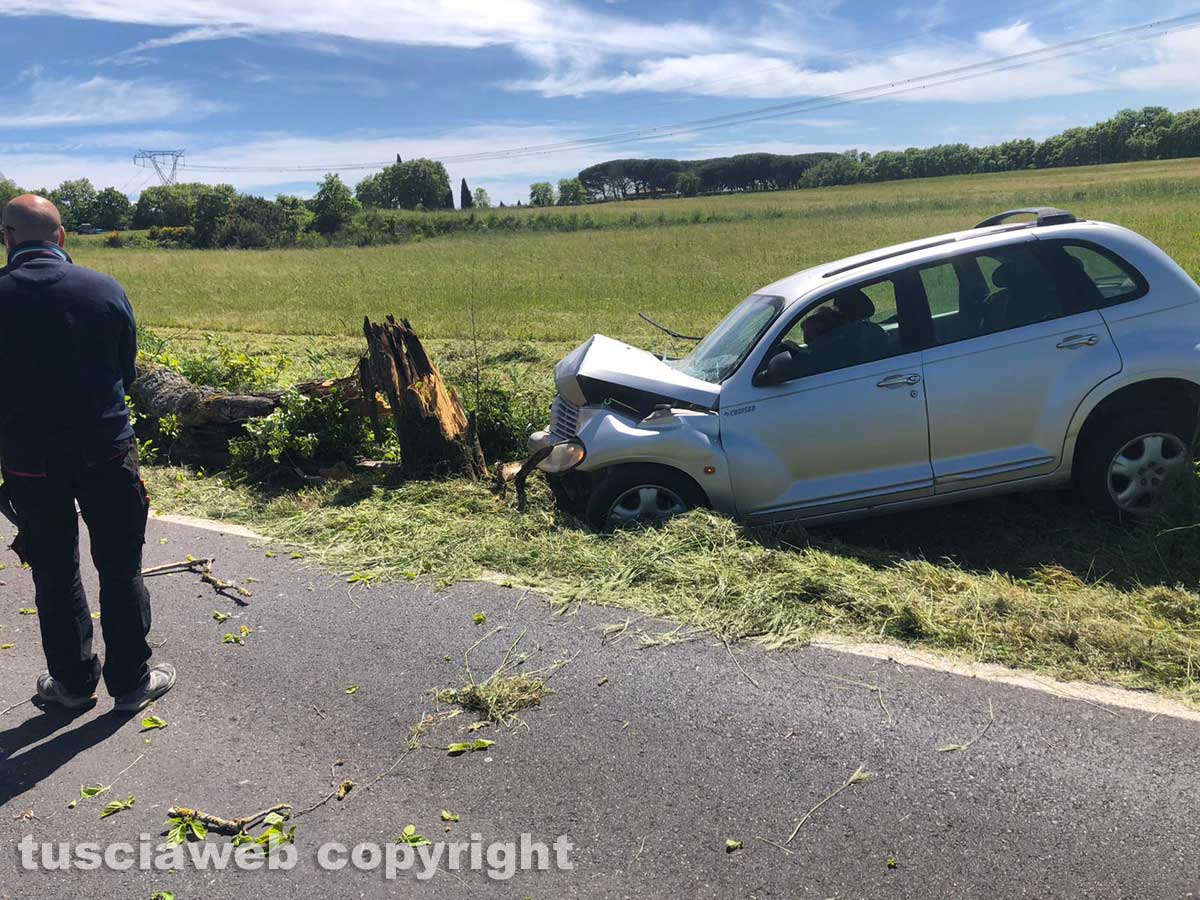 Bagnoregio – Auto si schianta contro un albero e lo abbatte.