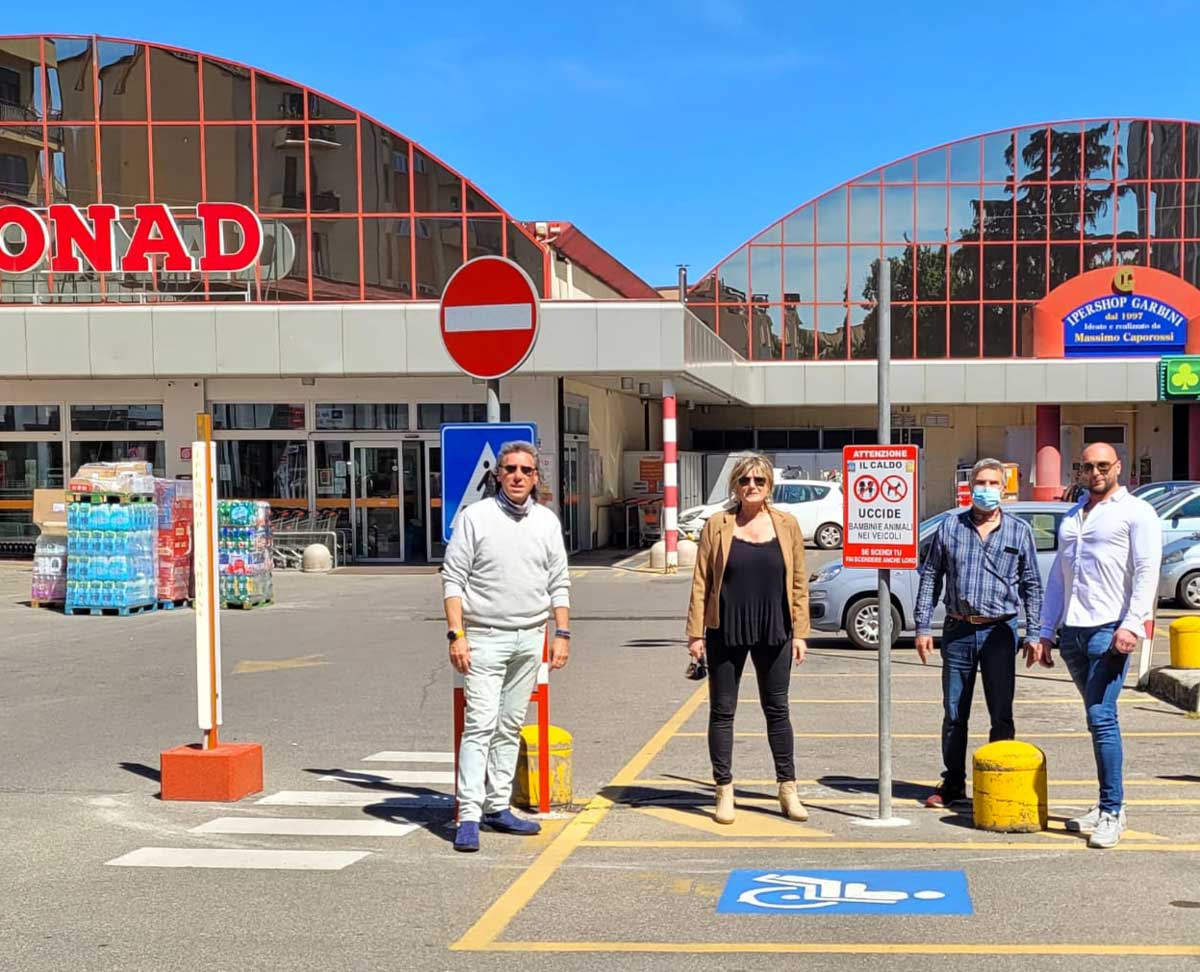 Viterbo – Bambini o animali abbandonati in auto, c’è il cartello che avvisa. Nei parcheggi dei centri commerciali cittadini sono stati posizionati ieri mattina.