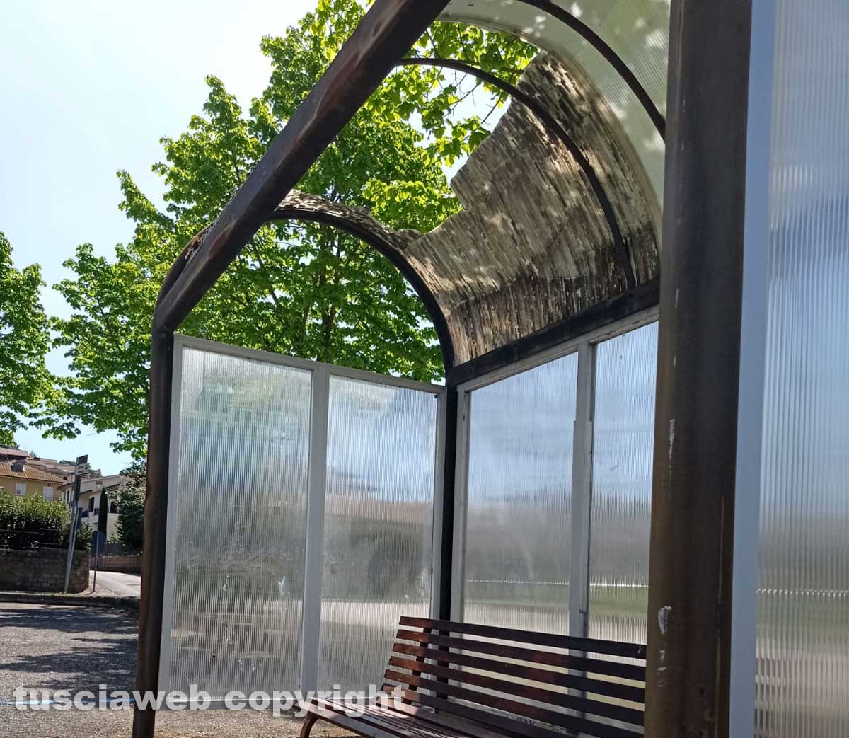 La pensilina si trova vicino la caserma dei carabinieri è pericolosa, segnalato anche in comune e non prendono provvedimenti.