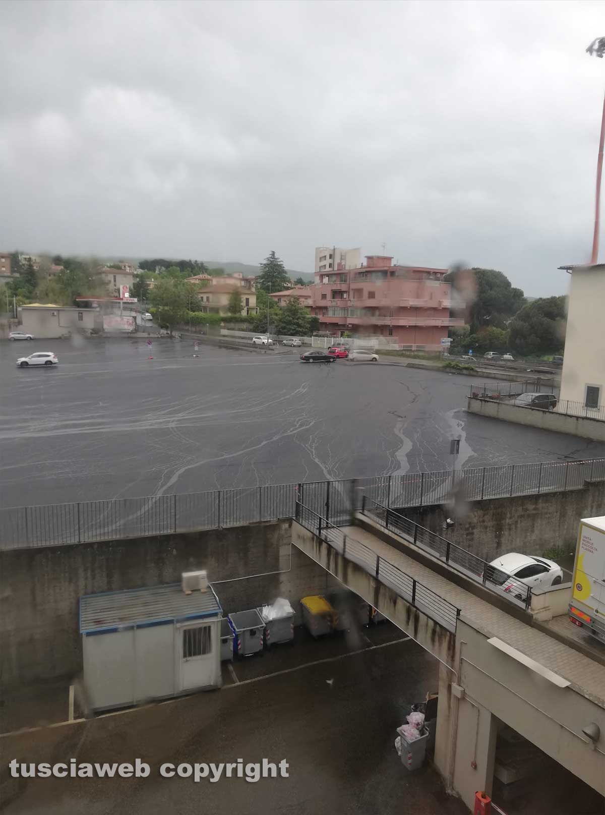 Viterbo – Riceviamo e pubblichiamo – Questo è il lavoro di asfaltatura appena concluso al parcheggio della questura e della Asl. Fiumi di acqua con allagamento dell’ingresso della Cittadella della Salute. Foto e segnalazione di Paola Iannarilli |