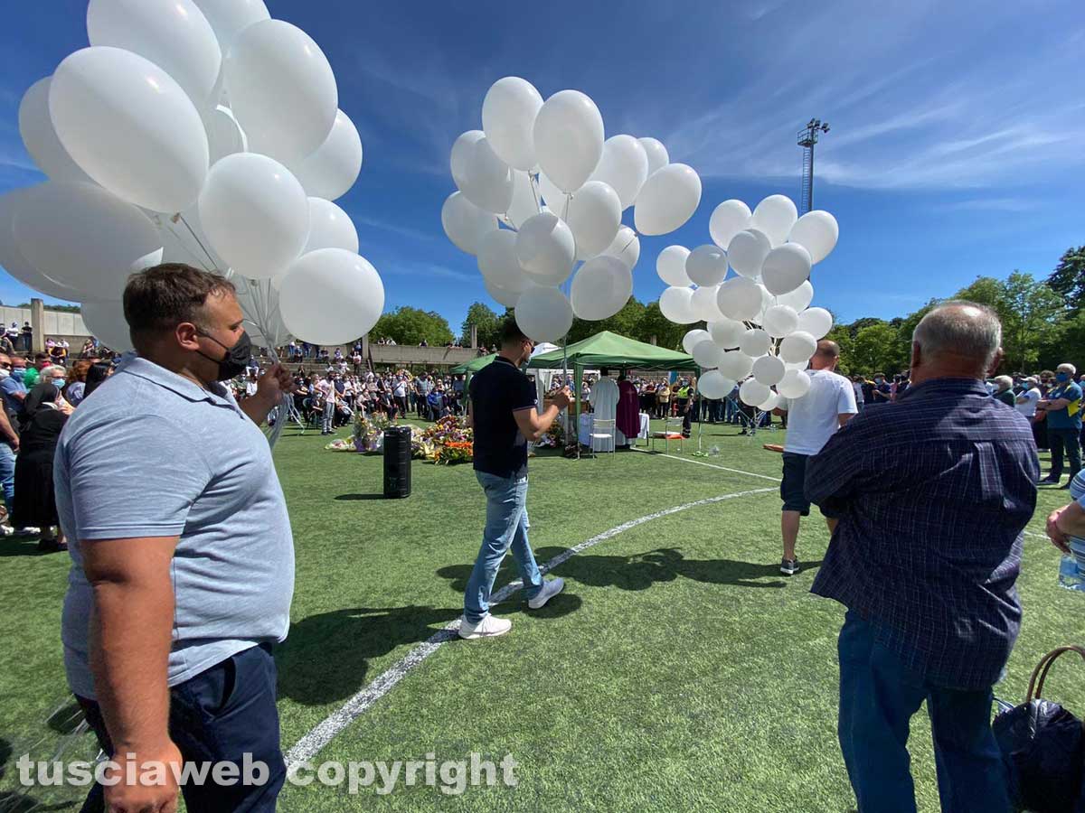 Oriolo Romano – “Sei la nostra forza e continuerai ad esserlo per tutti”. Ultimo giro di campo per Federico Gentili, con sosta davanti alle porte e alla tifoseria del Fidene. Per rendergli omaggio. L’omaggio sportivo, reso all’attaccante. L’omaggio di una città, riservato invece al figlio. Familiari, amici, un intero paese, Oriolo Romano, ha salutato oggi per l’ultima volta Federico Gentili, il ragazzo di 29 anni morto il 27 maggio mentre percorreva strada Montarone a Castel d’Asso, Viterbo. I funerali, oggi pomeriggio. Nel campo sportivo di Oriolo. Celebrati da don Giorgio Polleggioni.