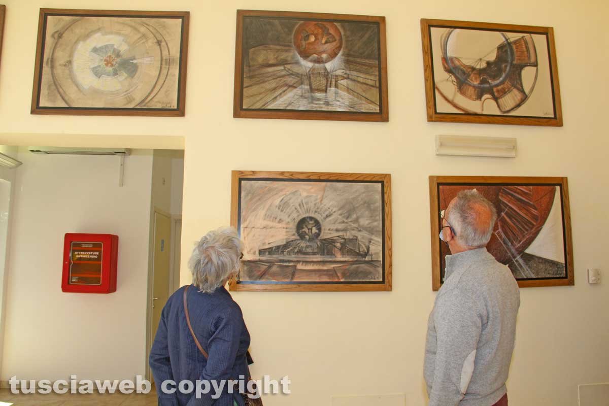 “Questi disegni – ha spiegato l’artista Capotondi, nato a Tarquinia nel 1936 -, rappresentano alcune delle fasi di realizzazione di un’opera, Fontanasfera, che è stata finanziata dalla regione Lazio e donata successivamente al comune di Viterbo. Inaugurata nel 1992, si trova ancora nel cuore del quartiere Murialdo. Spiace però dover sottolineare – ha rimarcato più volte il maestro – di come sia stata guastata da interventi maldestri e da atti di vandalismo. I primi ne hanno rovinato la lucidatura a piombo, che ne preservava l’integrità da agenti esterni. I secondi l’aspetto esteriore a causa di disegni con bombolette spray e altro”.