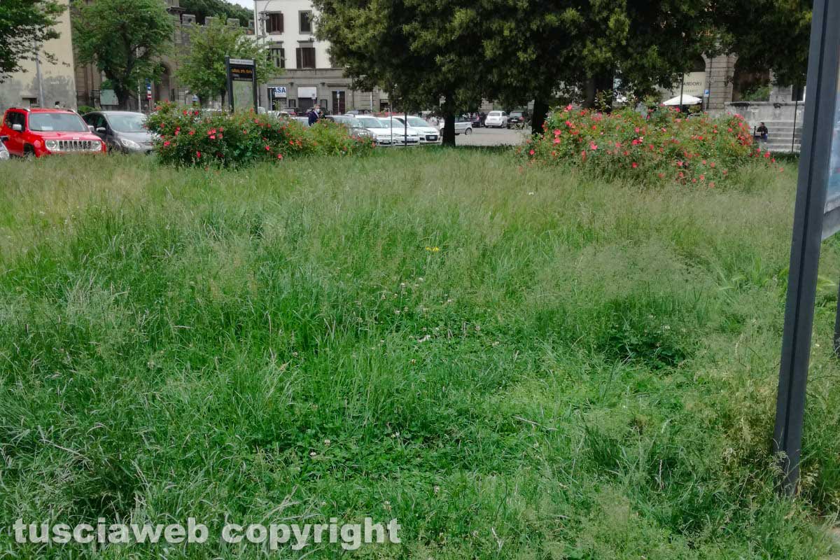 Viterbo - Incuria nelle aiuole di piazza della Rocca