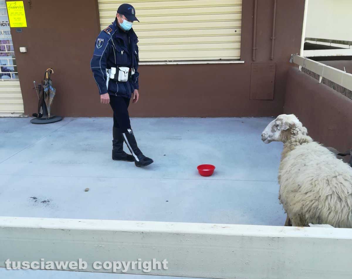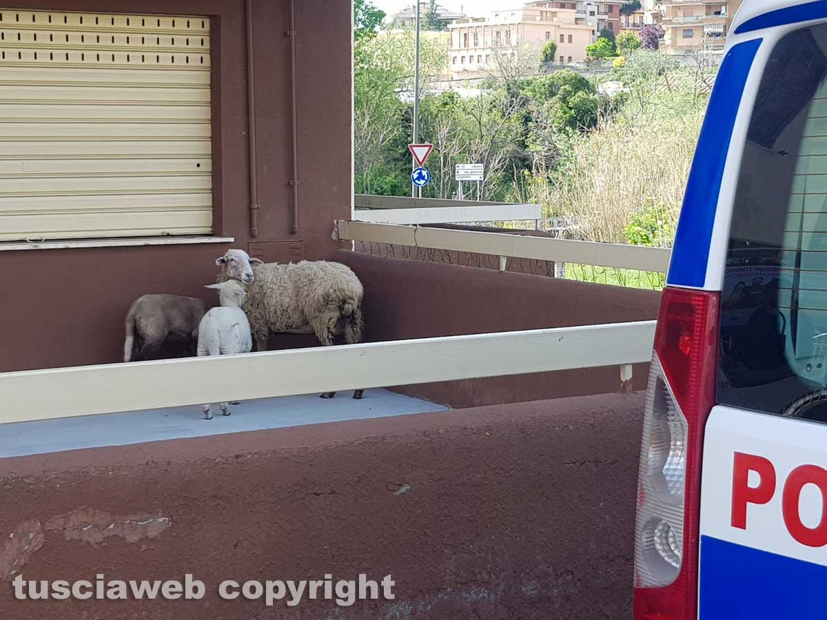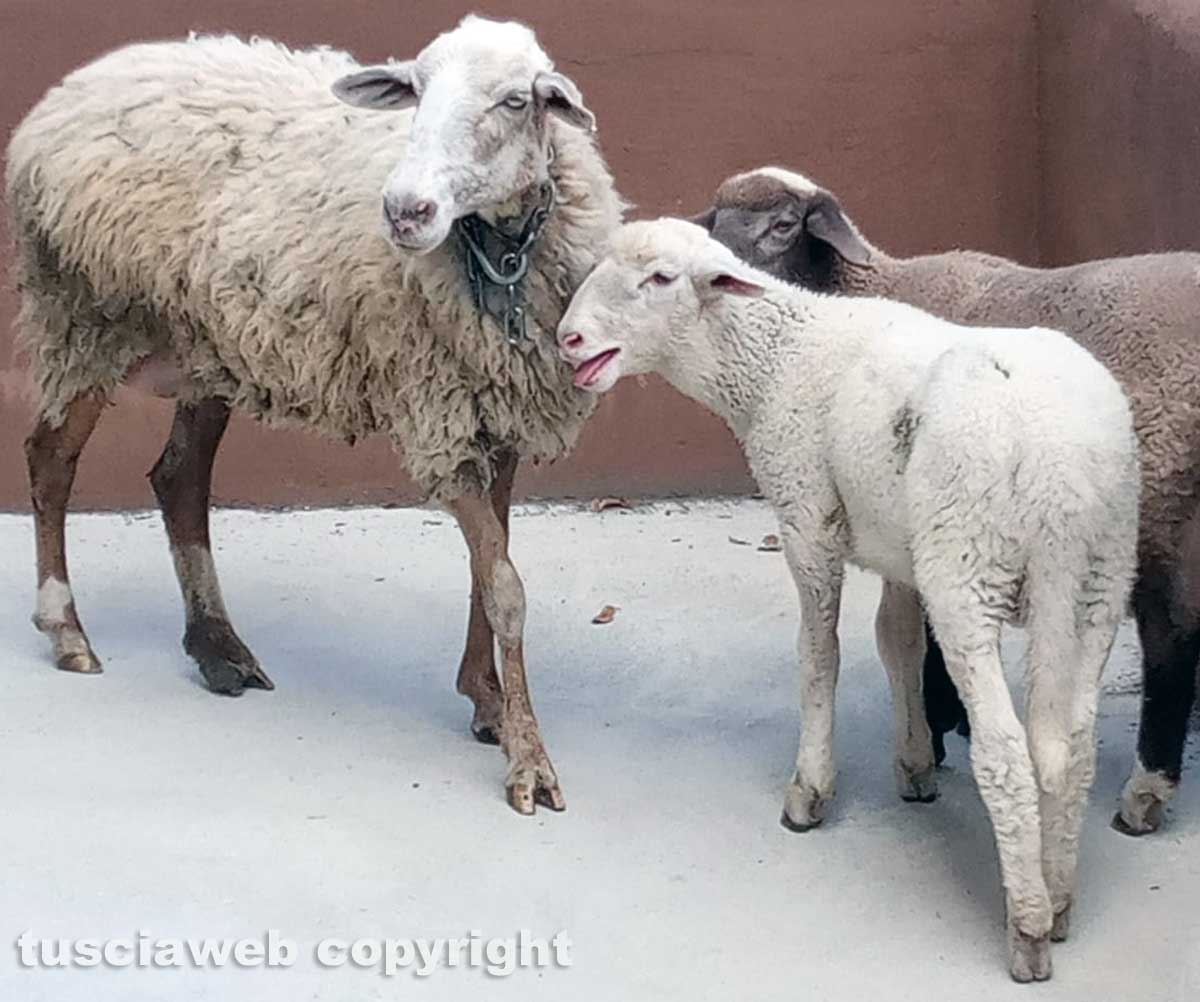 Viterbo – (g.f.) – Una pecora e due agnellini a spasso per le vie di Viterbo.