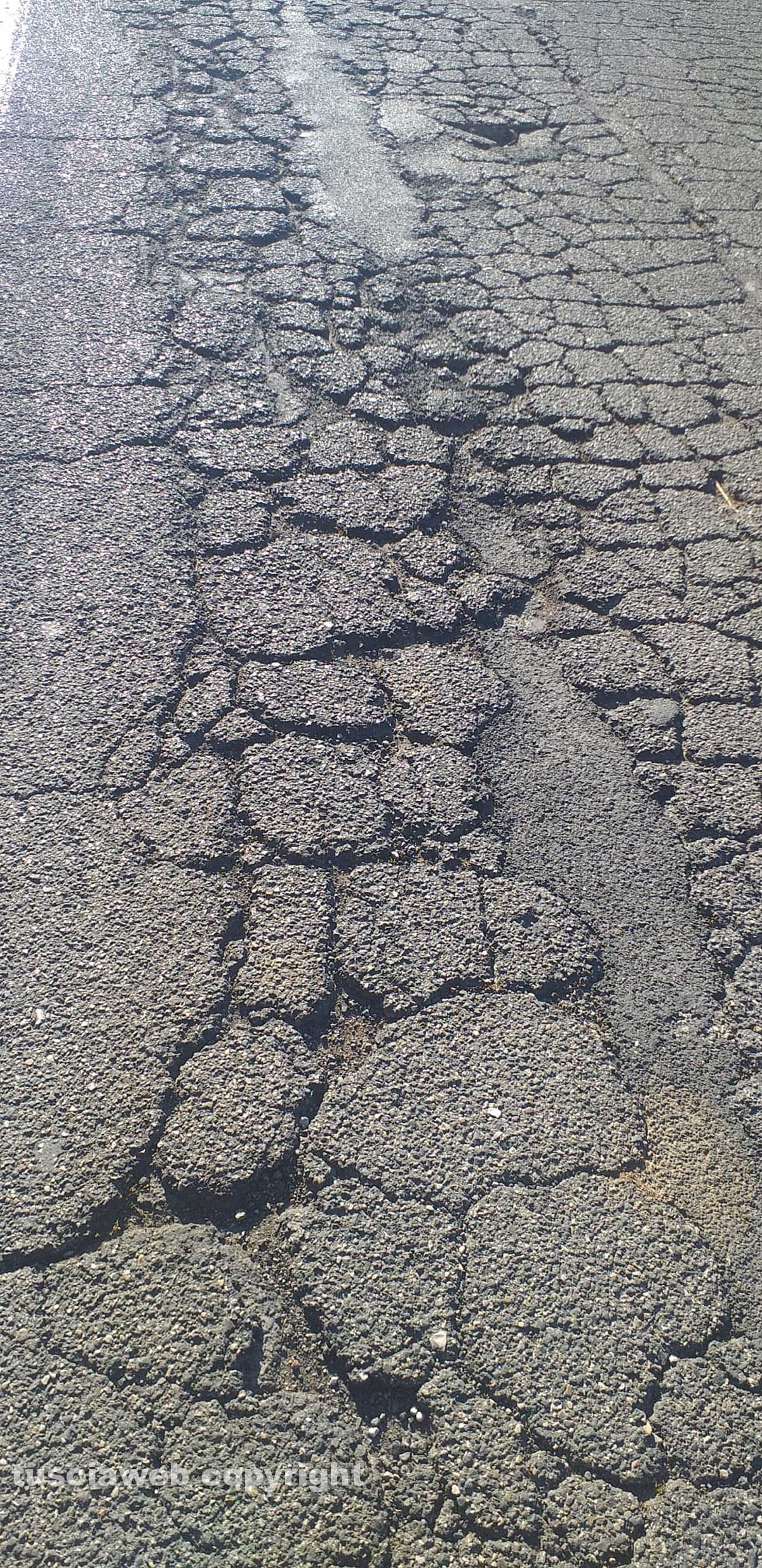 Viterbo – Riceviamo e pubblichiamo – Questa è una parte di via della Pila, marciapiedi impraticabili e strada disconnessa, piena di buche.