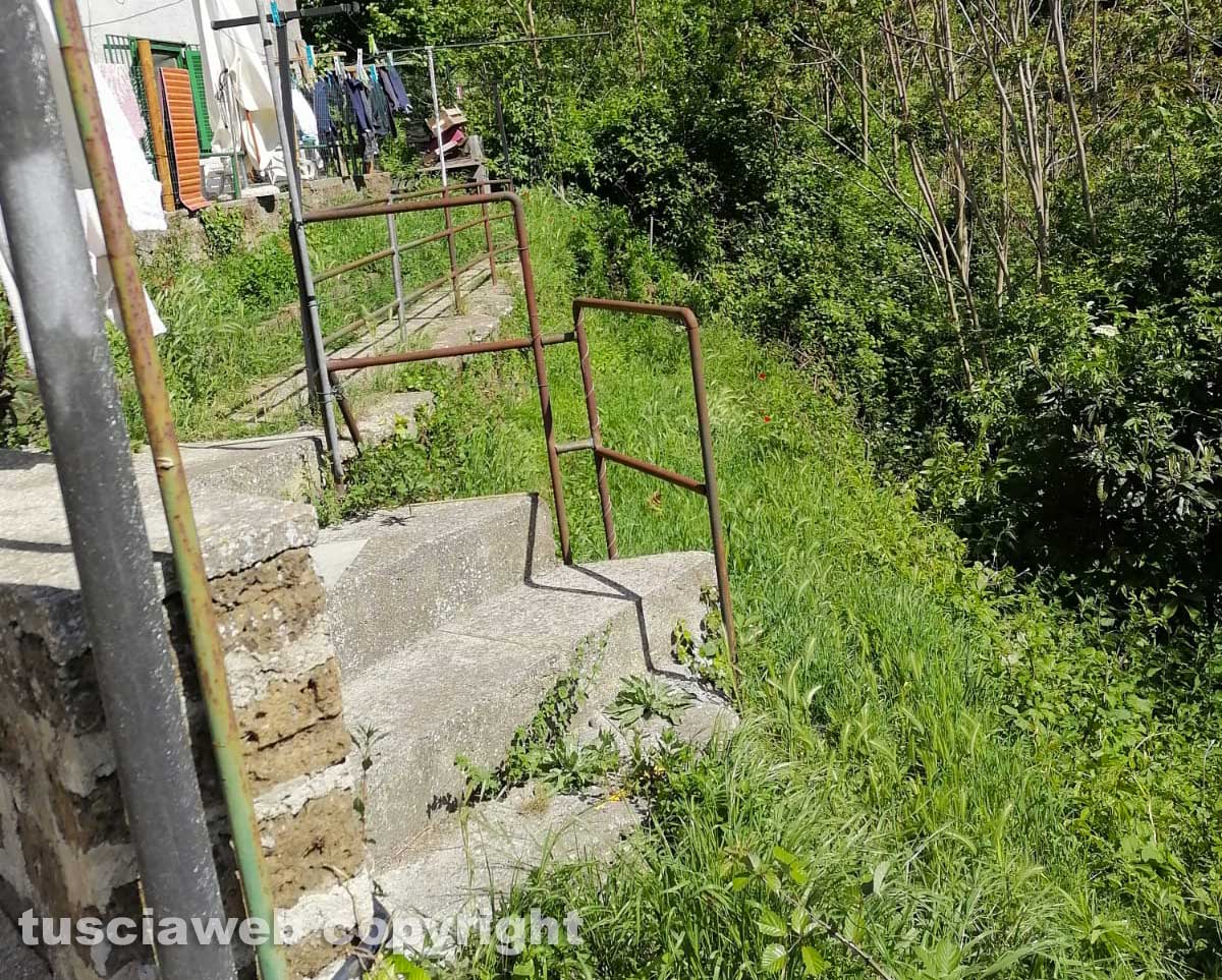 Siamo in cinque ad abitare qua e nessuno fa niente, io personalmente ho chiamato qualcuno pagandolo a mie spese e nessuno dei miei vicini è intervenuto. Sono infestata da animali di qualsiasi tipo, non posso stendere i panni all’aperto perché l’erba è troppo alta. Mi sono rivolta al comune e all’ufficio tecnico, hanno detto che non è di loro competenza, anche se noi sull’atto di proprietà non abbiamo questi scaloni i quali risultano, per l’appunto, comunali. Ora sono al telefono con un’altra persona per pulire sempre a mie spese. Vivo al centro storico ma è come vivere in un bosco.