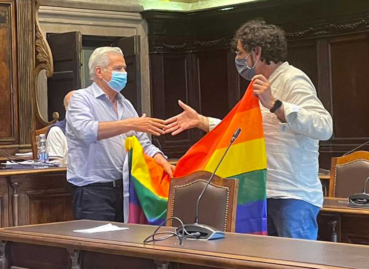 “Un regalo – spiega Erbetti – in segno dei pace, perché questa bandiera, oltre a rappresentare i diritti della comunità Lgbtiq+, ha i colori della pace”.