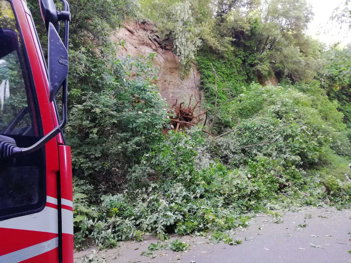 Viterbo – Albero crolla da un’altezza di 15 metri, frana in strada consorziale Mezzogrosso.