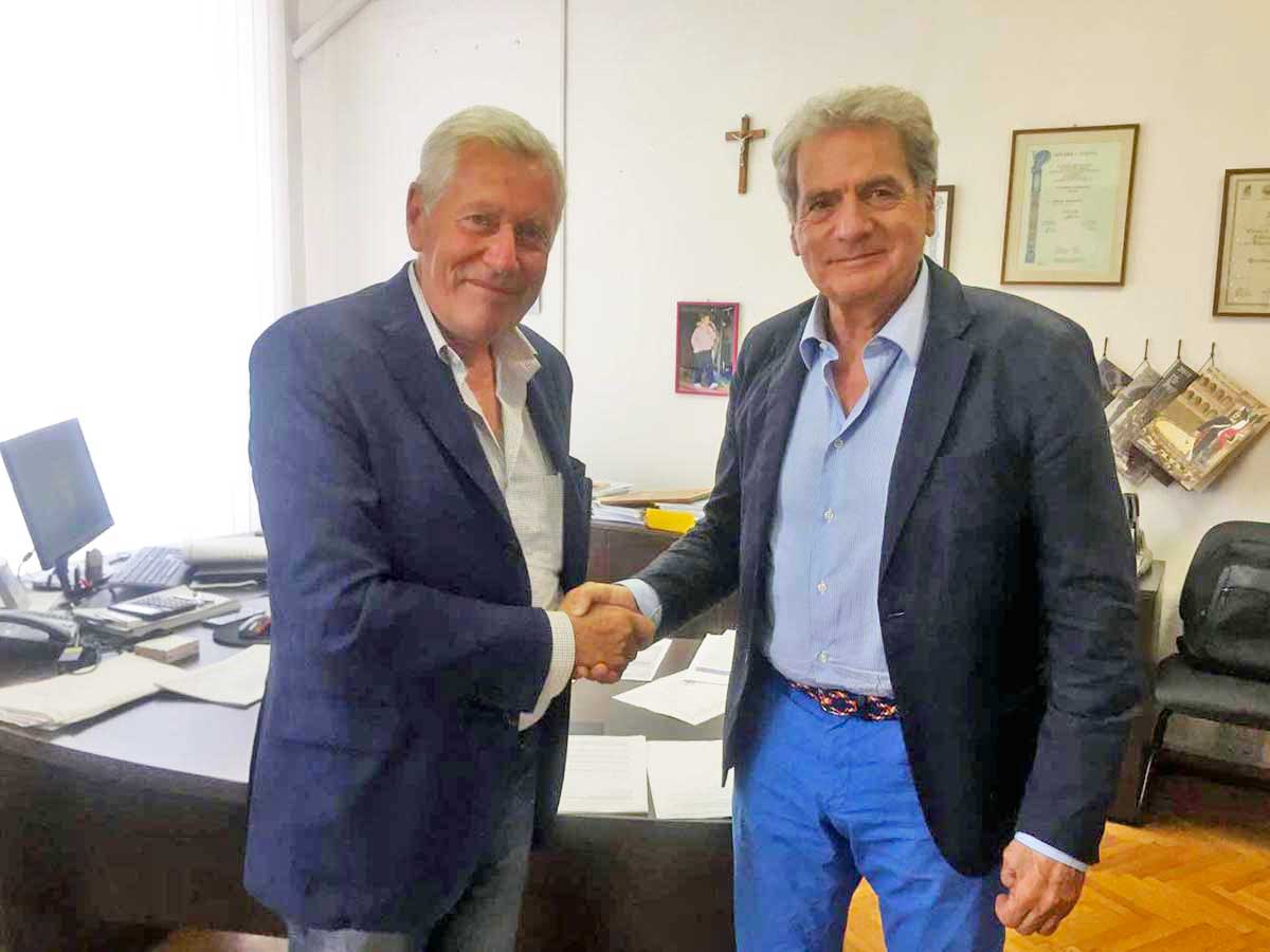 ![]() Viterbo – Il passaggio di consegne tra il sindaco Giovanni Arena e il suo predecessore Leonardo Michelini |