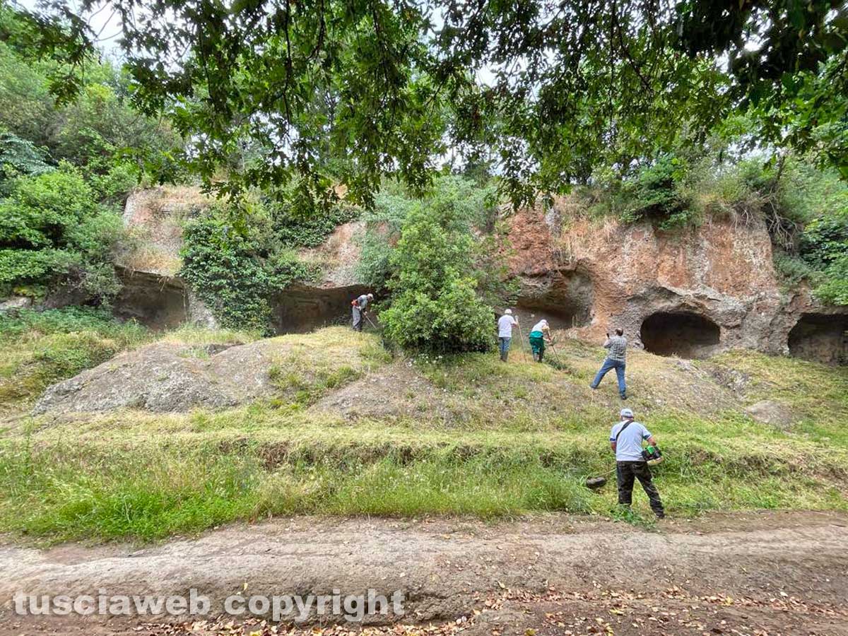 Assieme ai sindacalisti, la squadra di caccia al cinghiale Le carbonare di Viterbo che ogni anno collaborano con la Fai Cisl per tenere pulito parte del patrimonio culturale del territorio. E sono stati loro, diretti dal caposquadra Andrea Burla, a pulire il primo tratto della necropoli di Castel d’Asso, che s’affaccia poi sulla valle e la torre di fronte. Il gruppo Le carbonare è composto da 26 persone ed è nato 12 anni fa. Ieri, sul campo erano una decina.