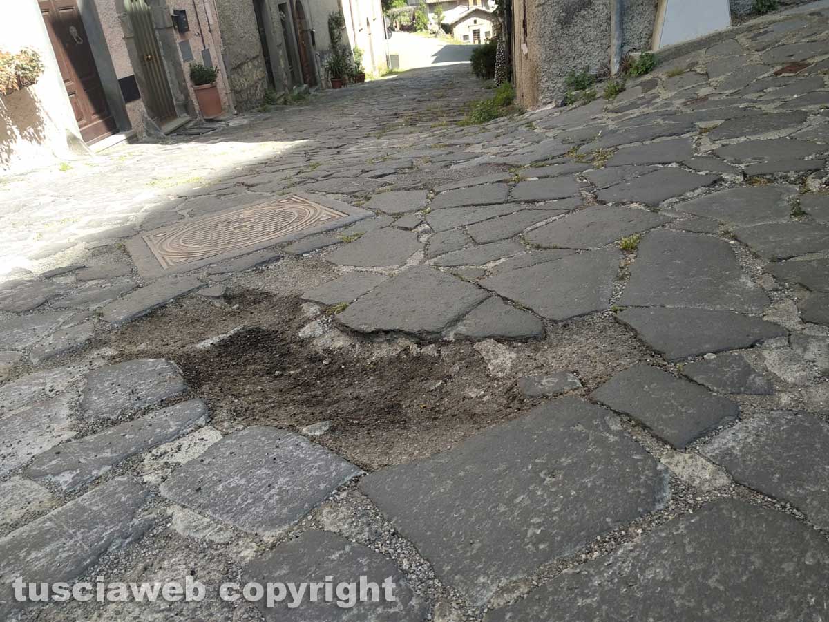 “Città nel degrado più completo – scrive Andrea Basile -, dai rifiuti, al verde, strade divelte e con segnaletica orizzontale assente. Decoro urbano centro storico completamente nullo. Piazze storiche all’abbandono, segnaletica urbana distrutta e indecorosa. Tutte le Porte ingresso delle mure castellane cadono a pezzi dalle mura alle porte di legno. Città decadente. E parliamo di turismo. Ci dovremmo vergognare di tutto questo. Non è dignitoso e non evidenza neanche in alcun modo l’amore che si tiene a questa antica e bella città. Vivo al centro, parlo con i turisti. Situazione imbarazzante. Bella città ma tenuta molto molto male e abbandonata a se stessa. Degrado”. Un elenco dettagliato, preciso, dove mancano solo le grandezze. Rifiuti un po’ dappertutto, erba alta metri e buche che somigliano a voragini. Ovunque, al punto che non si sa da dove cominciare.