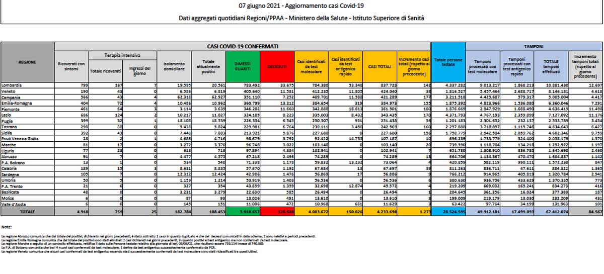 - "Record somministrazioni: 68mila 031 dosi di vaccini effettuate nella giornata di ieri 9 giugno"