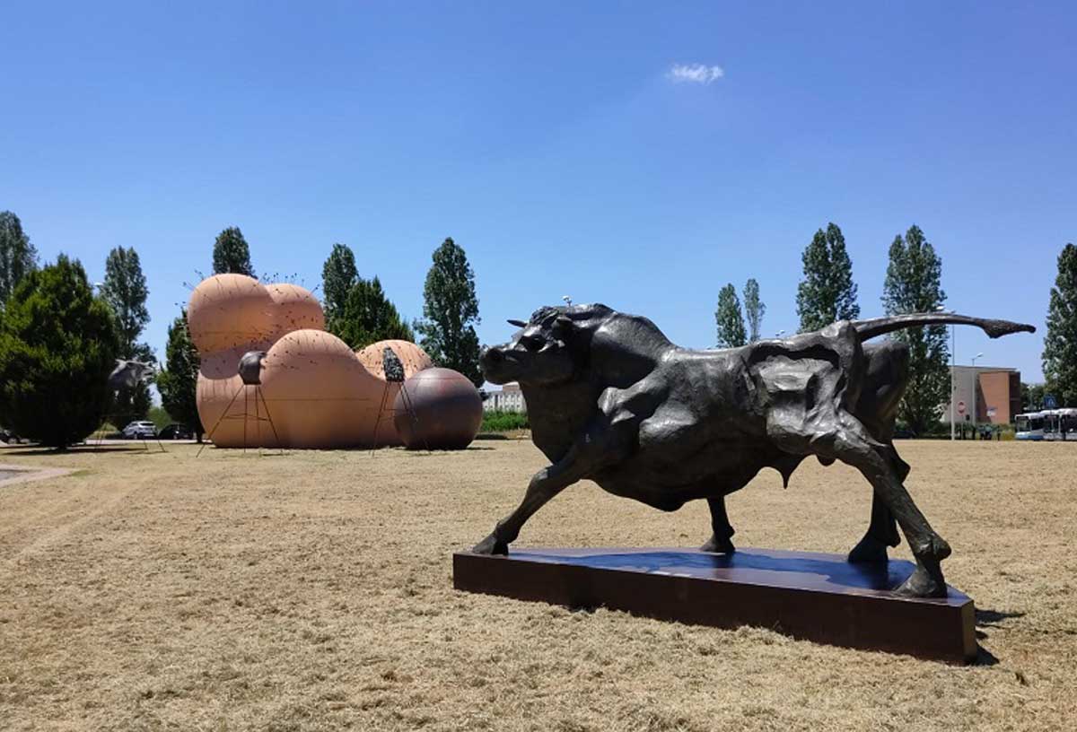 L’occasione per lanciare la proposta è arrivata venerdì scorso, con il posizionamento nel Parco delle sculture, di “Possenza”. Una scultura gigante in bronzo a forma di toro. 10 quintali per 4 metri e mezzo di lunghezza e valore assicurativo stimato in 170mila euro. L’opera di Mario Pavesi – allievo di Henry Moore che ha condiviso anni a fianco di Antonio Ligabue – resterà in prestito a titolo gratuito fino a settembre 2022 e che è stata collocata al fianco della Maestà sofferente di Gaetano Pesce, inaugurata l’8 marzo in occasione della Festa della Donna.