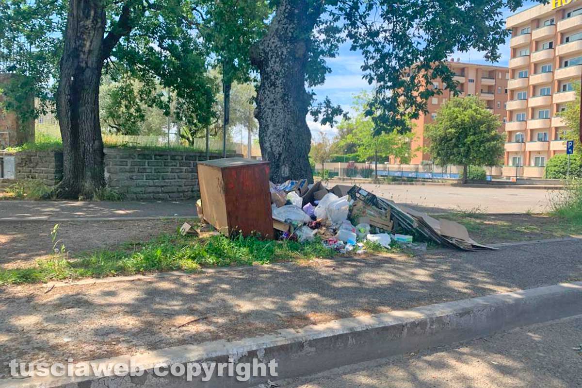 Viterbo - I rifiuti abbandonati nel parcheggio