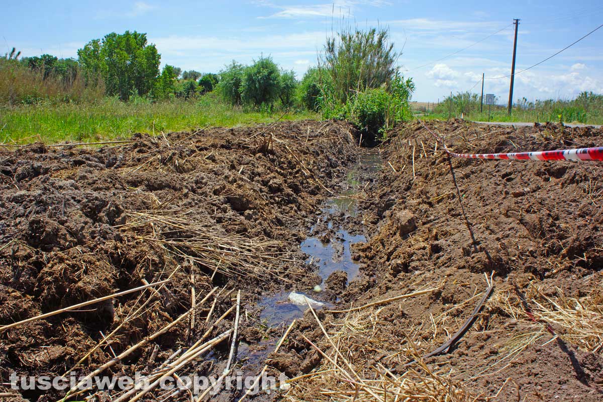Viterbo – Castel d’Asso – La voragine provocata dall’incidente che ha causato la morte di un ragazzo di 29 anni