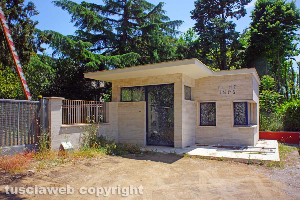 Se non bastasse, la strada termina con un dosso che di fatto immette in mezzo all’incrocio di strada Bagni, con le macchine che si immettono da sinistra e altre che potrebbero uscire dalle terme a destra. Di fronte, invece, una voragine che le macchine tendono ad evitare, finendo ancor più in mezzo all’incrocio. Poco oltre lo scandaloso stato di abbandono dell’edificio delle ex Terme Inps. Così come “Lanterna termale”, opera di Alfredo Pirri ricavata all’interno dell’ex guardiola delle ex terme e finanziata con un bando pubblico della regione Lazio. Anch’essa, alla vista, lasciata lì a se stessa, con l’erba che gli cresce attorno e qualcosa buttato lì a casaccio.