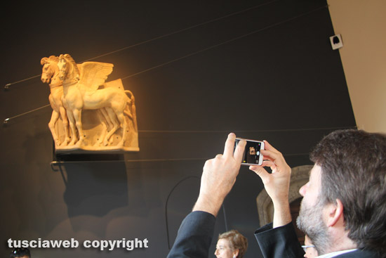 Tarquinia – Il ministro Dario Franceschini che fotografa i cavalli alati