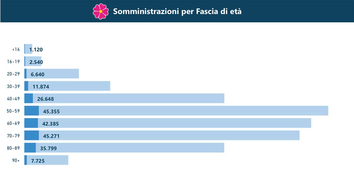 Coronavirus - Per entrambe le fasce d'età 45mila somministrazioni su un totale provinciale di 225mila