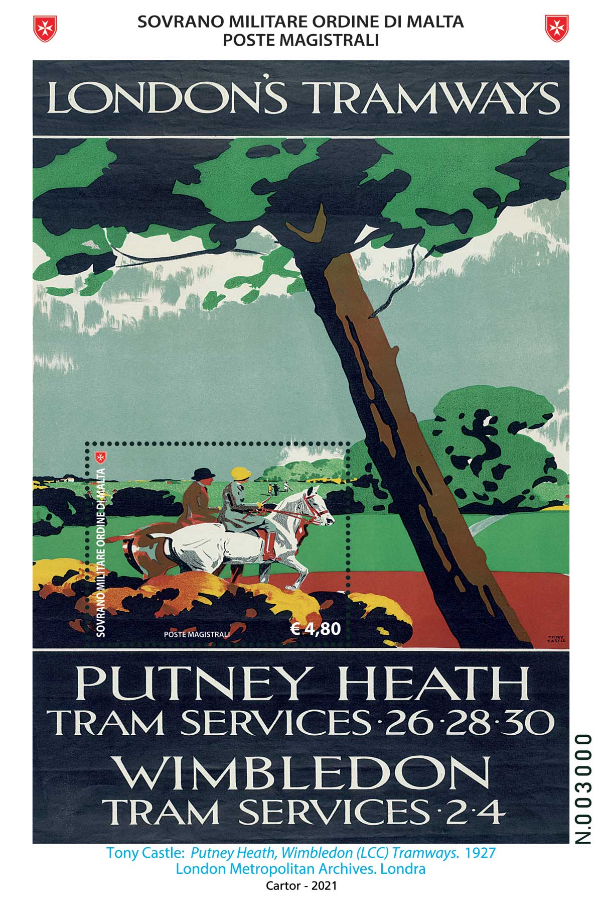 La seconda serie ha come soggetto “La grafica nei soggetti pubblicitari” ed è composta da due dentelli da Euro 4,80 in singolo foglietto, riproducenti due manifesti. Il manifesto del 1927 “London’s Tramways”, opera di Tony Castle, mostra un uomo e una donna che percorrono a cavallo la ridente zona di Putney Heath e indica il numero che contrassegna i tram che percorrono il luogo. Il manifesto del 1938 “Seeing Glascow by Tram and Bus” venne pubblicato in concomitanza con la Empire Exhibition a Bellahouston Park. In secondo piano, la Tait Tower costruita per l’Esposizione. Tiratura: cinquemila esemplari.