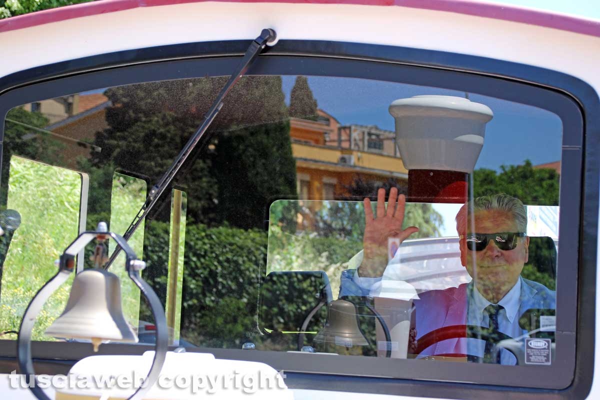 Viterbo - L'assessore De Carolis aggrappato al trenino turistico