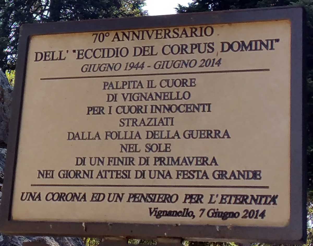 Vignanello – Riceviamo e pubblichiamo – Il 7 giugno è una giornata importantissima per Vignanello. Dal 2014, per delibera del consiglio comunale, in quella data è stata istituita la Giornata della memoria di Vignanello, per ricordare l’eccidio del Corpus Domini, avvenuto fra il 5 e il 9 giugno del 1944, classificato per numero di vittime civili e per l’efferatezza come una delle peggiori stragi nazifasciste compiute in Italia.