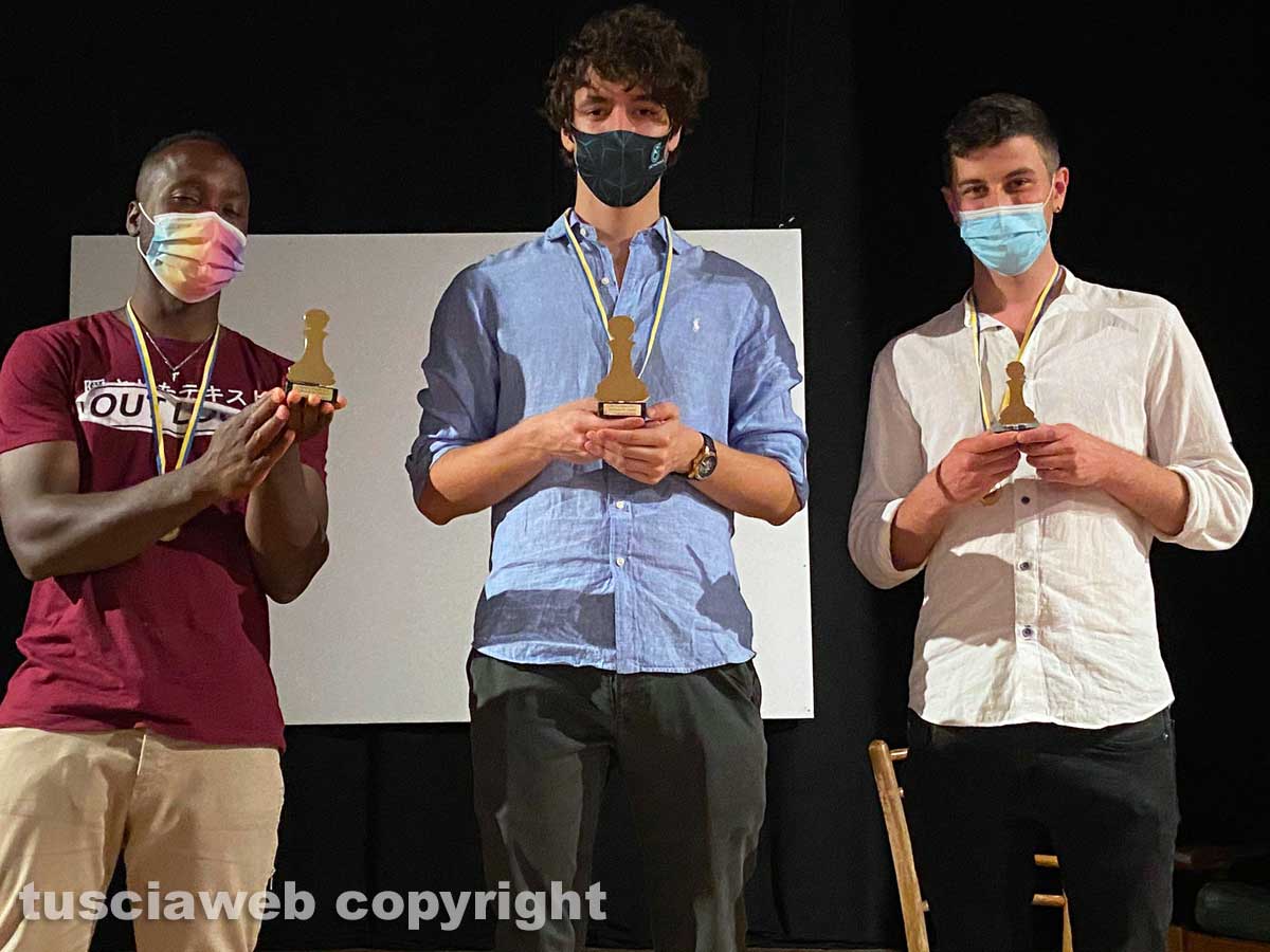 A premiare, infine, i vincitori anche la Rete degli studenti medi, Bianca Piergentili, e Lucia Ferrante dell’Aucs. Entrambi, sindacati degli studenti. Alle superiori il primo e all’università il secondo. In pochi anni, assieme a Francesco Boscheri, oggi segretario dei Giovani democratici, hanno costruito un’organizzazione presente in quasi tutti gli istituti e a un passo, adesso, dall’entrare con una buona percentuale anche all’interno del senato accademico dell’università degli studi della Tuscia con la lista PerCorso. E, all’Unitus, non accadeva da almeno vent’anni. “Questo progetto – ha detto Piergentili e Ferrante riferendosi al torneo di scacchi – è l’inizio di un percorso sul nostro territorio. Un momento di scambio e conoscenza, attraverso la cultura”.