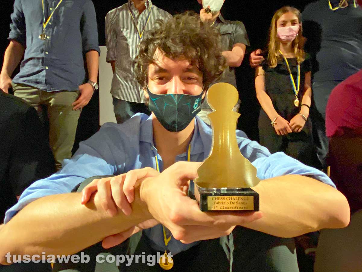 Viterbo – Vince Gabriele Quaglia. Studente, vent’anni e giocatore amatoriale. Il torneo è quello degli scacchi, organizzato dal Bistrot del teatro, la Rete degli studenti medi, l’associazione scacchistica viterbese, il Centro per gli studi criminologici (Csc) e Rudy Hermann Guede. Iniziato appena la Tuscia è tornata in zona gialla e terminato ieri pomeriggio con le premiazioni sul palco del teatro in via Cavour a Viterbo.