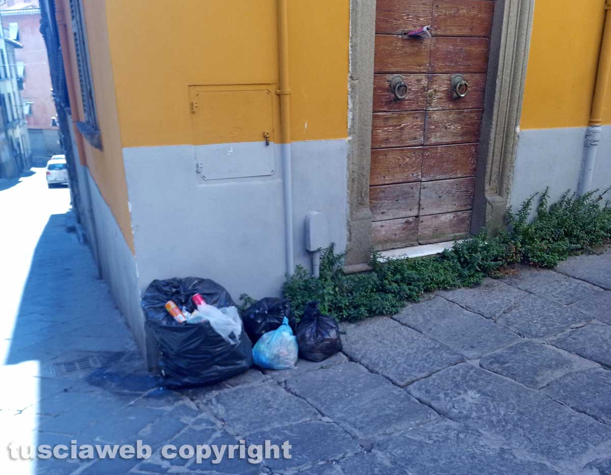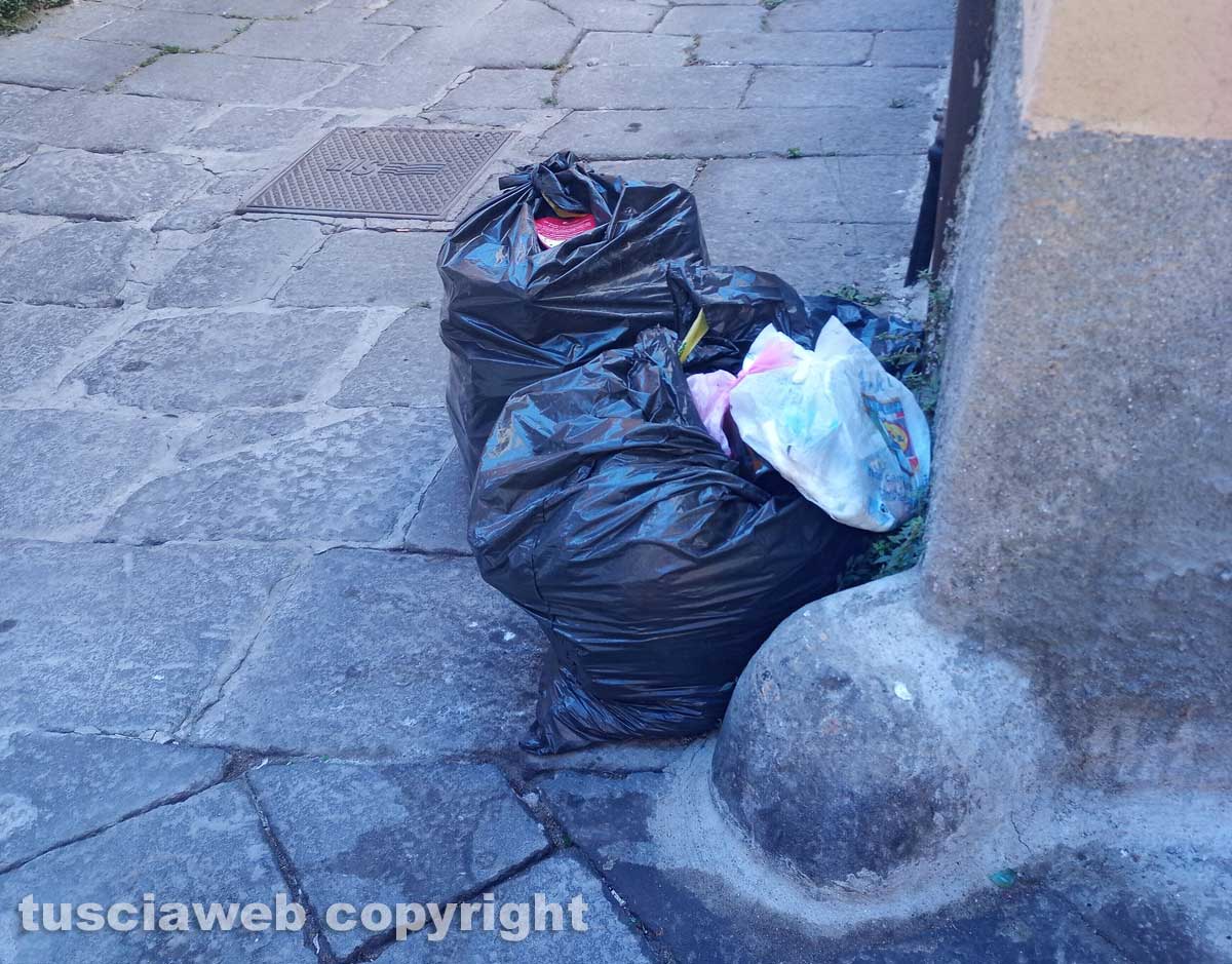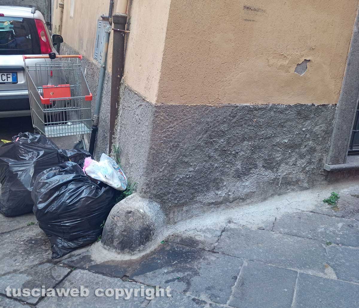Viterbo – Riceviamo e pubblichiamo – Sto qui a segnalare il degrado totale che c’è in pieno centro sono ormai settimane che abbiamo buste con bollino rosso non ritirate. Da giovedì è spuntato un bel carrello della spesa.