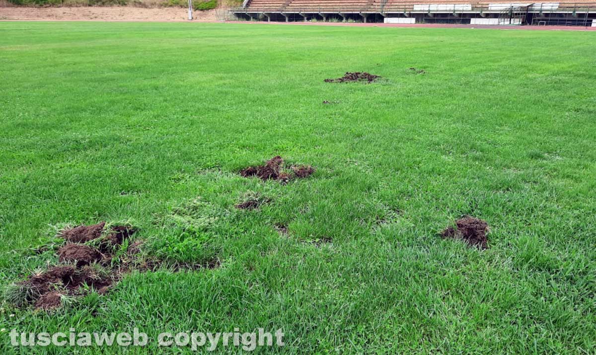 Tuscania – Il campo sportivo danneggiato dai cinghiali