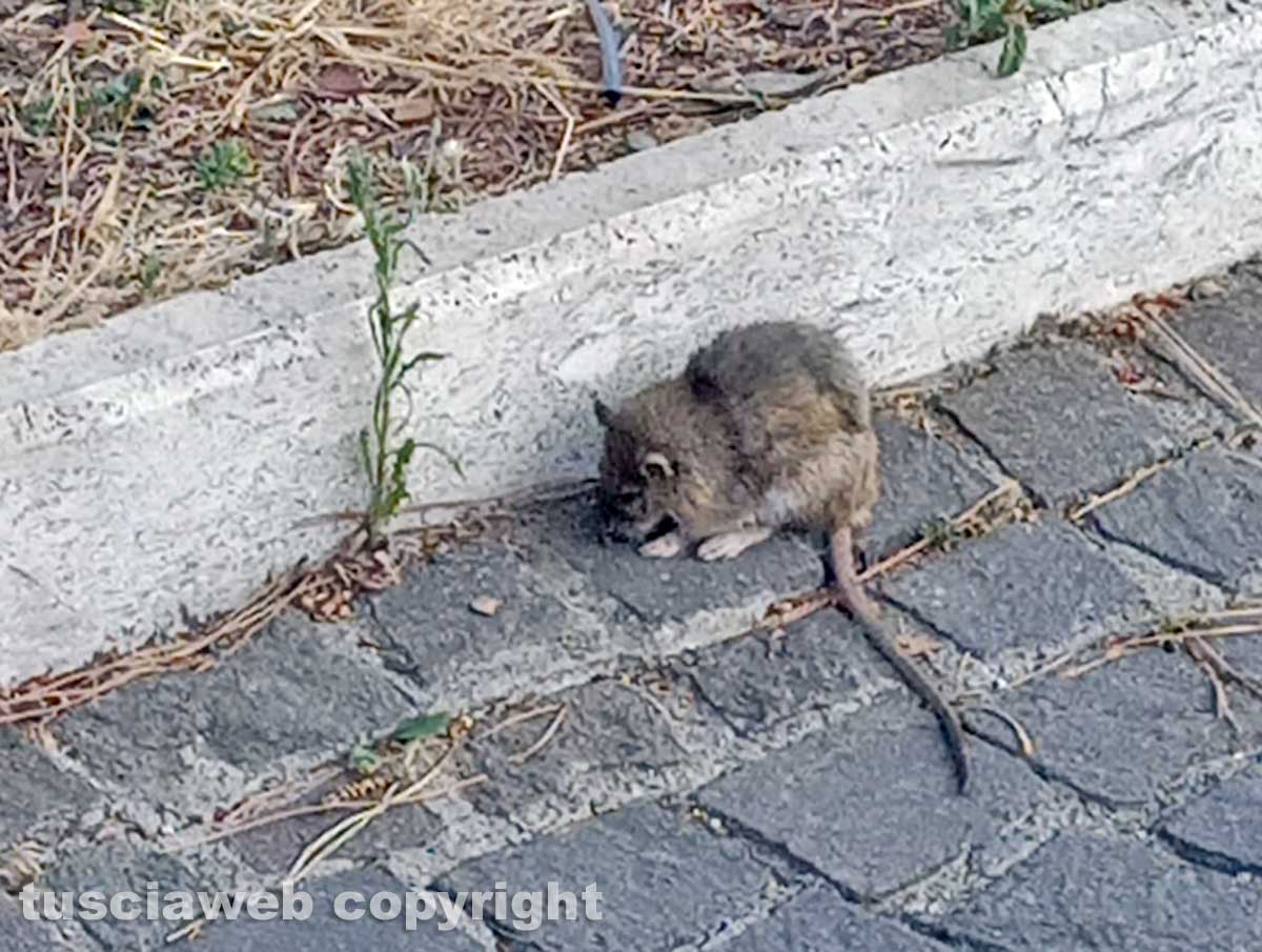 Viterbo – “Attento, attento…che c’hai ‘n topo sulla ruota!”. L’altro giorno al Sacrario. Fine settimana. Viterbo, a ridosso della fontana dedicata ai paracadutisti. Poco distante dal punto dove, una decina di giorni fa, Polizia locale e Vigili del fuoco hanno portato via un serpente che per poco non veniva pestato da un passante. Da quelle parti ci sono parcheggio, bar, ristoranti e attività commerciali. C’è la fermata principale del trasporto pubblico locale, Francigena, e una sala esposizioni, la Pensilina, dove è attualmente in corso una mostra.