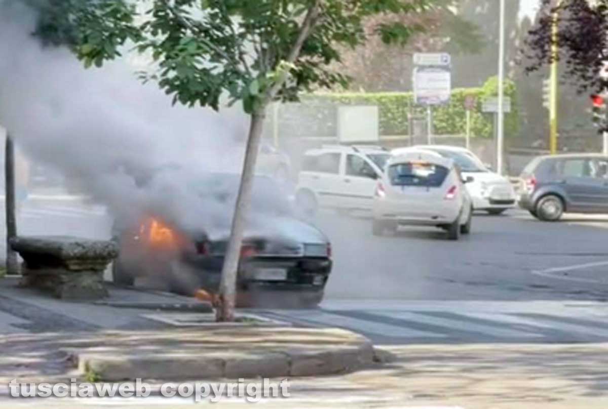 In fiamme, per cause da accertare, una macchina che si trovava parcheggiata a piazza Crispi.