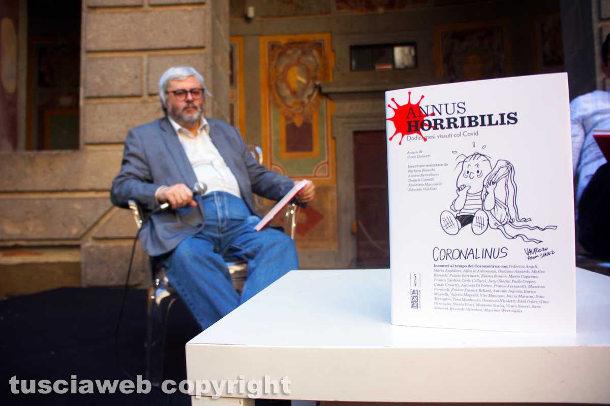 “Annus Horribilis. Dodici mesi vissuti col Covid”, ieri pomeriggio l’intervista streaming dal cortile rotondo di palazzo Farnese a Caprarola, dove è in corso il Caffeina Oro Festival. A confrontarsi attorno al libro, l’editore e direttore di Tusciaweb, Carlo Galeotti, e il consigliere comunale di Viterbo, Giacomo Barelli. A portare il saluto anche il sindaco di Caprarola Eugenio Stelliferi e la direttrice di palazzo Farnese, Marina  Cogotti.
