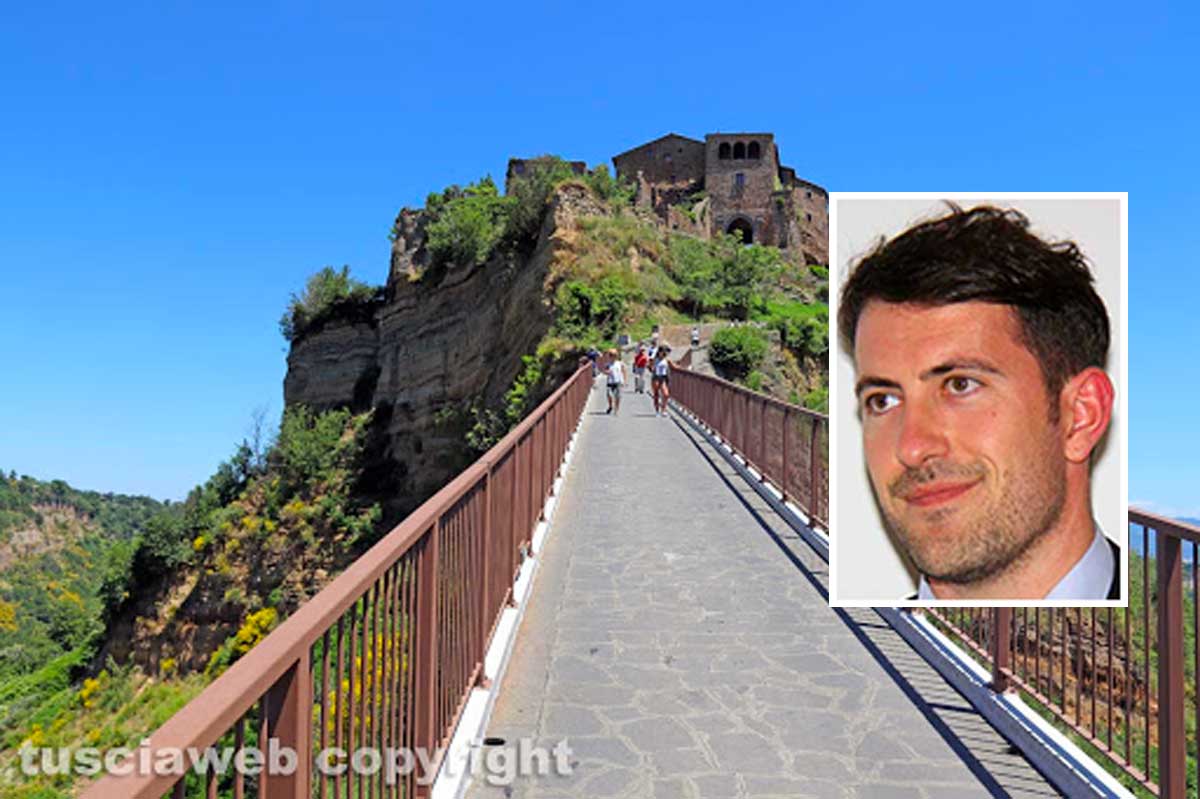 Civita di Bagnoregio – Nel riquadro: Il sindaco Luca Profili
