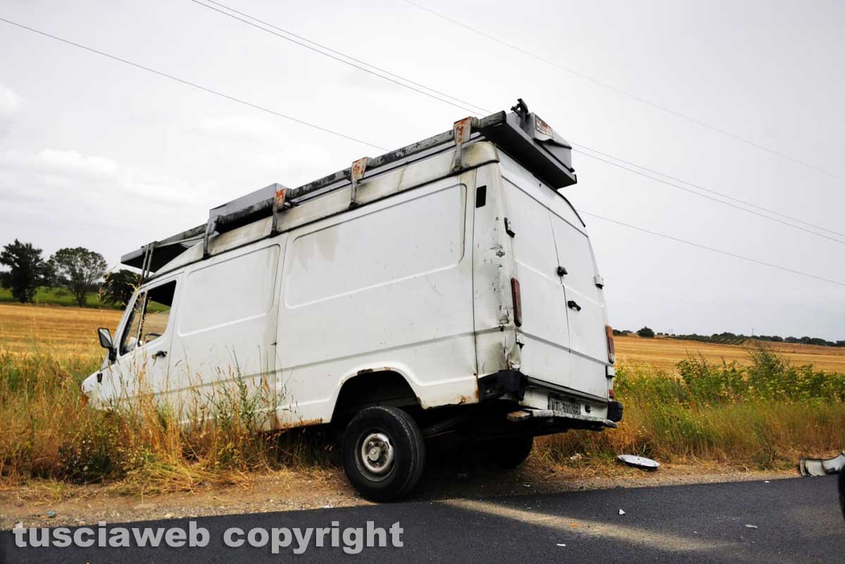 Viterbo – Furgone si scontra con un’auto e finisce fuori strada.