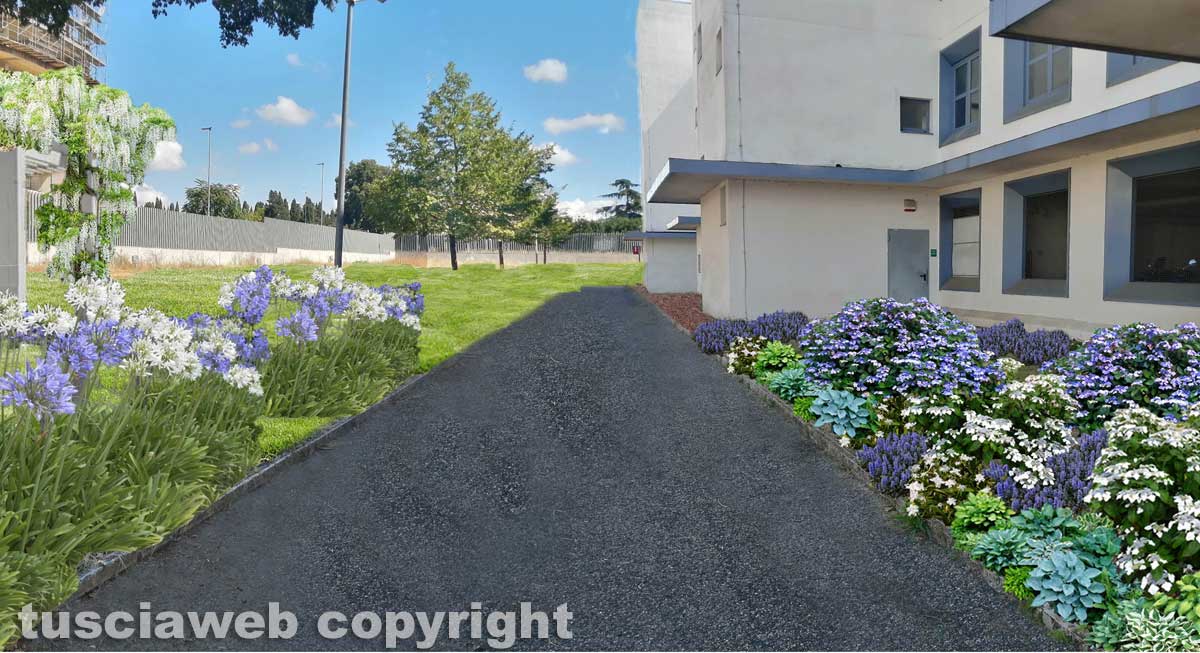 “Un luogo questo, dove le persone arrivano cariche dei loro pensieri, delle loro inquietudini, distratte dalle problematiche che devono affrontare, non si accorgono del tempo che passa, i giorni, i mesi, gli anni. Il progetto – ribadisce più volte Barbara Latilla – ha come obiettivo scandire le stagioni dell’anno, sottolineandole attraverso i colori delle fioriture con cromie che passano dal bianco all’azzurro cerùleo, colori presenti nella facciata principale, con pennellate di viola e rosa tenue”.