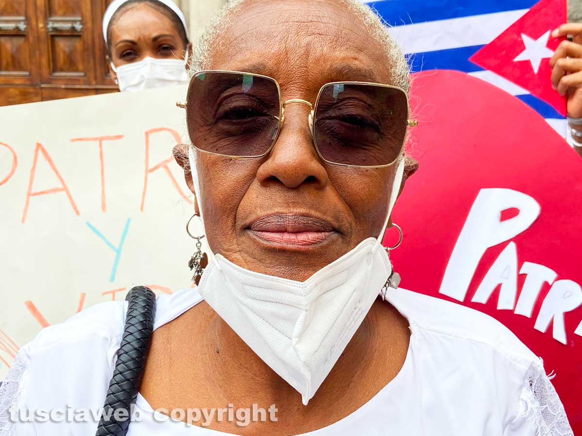 Tomasa Rivero Martiatu e Yoel Castellini Herrera stavano entrambi in piazza della Repubblica sabato mattina. A Viterbo. Con cartelli, musica e slogan. La seconda sparata da una macchina in un angolo all’imbocco con largo Marconi dove c’è un parcheggio. Protestavano tutti contro la situazione che va avanti a Cuba da diversi giorni. Con le persone scese in strada per chiedere migliori condizioni di vita. Nell’isola ormai manca tutto e il governo, già dai tempi dell’ultimo Castro, è al collasso. Una crisi diventata ormai non soltanto più politica ed economica, ma sociale e generazionale. Profonda. Ma che deve fare ancora pienamente i conti con una rivoluzione che in pochissimo tempo ha saputo dar vita anche a una narrazione a livello internazionale da cui sono sbucati fuori veri e propri miti, come Che Guevara e lo stesso Castro, oppure Camilo Cienfuegos, che hanno segnato l’immaginario di milioni di studenti e lavoratori in tutto il mondo, diventandone una bandiera sic et simpliciter, ultimamente, a tratti, condivisa pure a destra. Caratterizzando, inoltre e non da ultimo, l’identità di un intero popolo. Quello cubano. In bilico tra una rivoluzione, che ha significato anche indipendenza e dignità, e una “modernità” post castrista che rischia di precipitare di nuovo l’isola sotto l’ala protettiva degli States. Come ai tempi di Batista. Con l’emigrazione di Miami che chiede di nuovo a gran voce l’intervento militare di Biden. Come, invece, in tal caso, ai tempi di Kennedy e della Baia dei porci nel 1961.