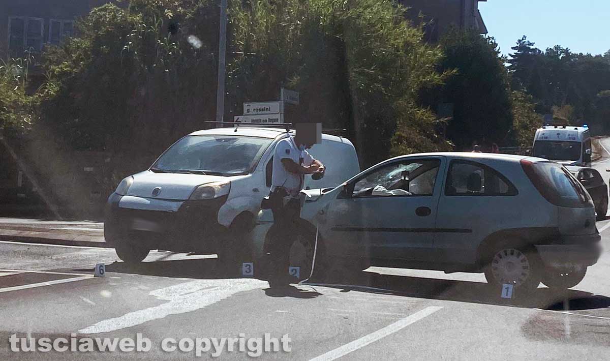 Viterbo - Sul posto gli agenti della polizia locale e un'ambulanza del 118