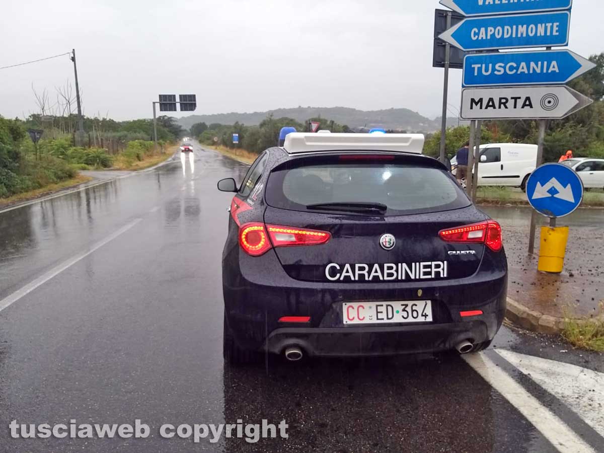 Sul posto per la viabilità sono intervenuti i carabinieri dell’aliquota radiomobile della compagnia di Montefiascone.