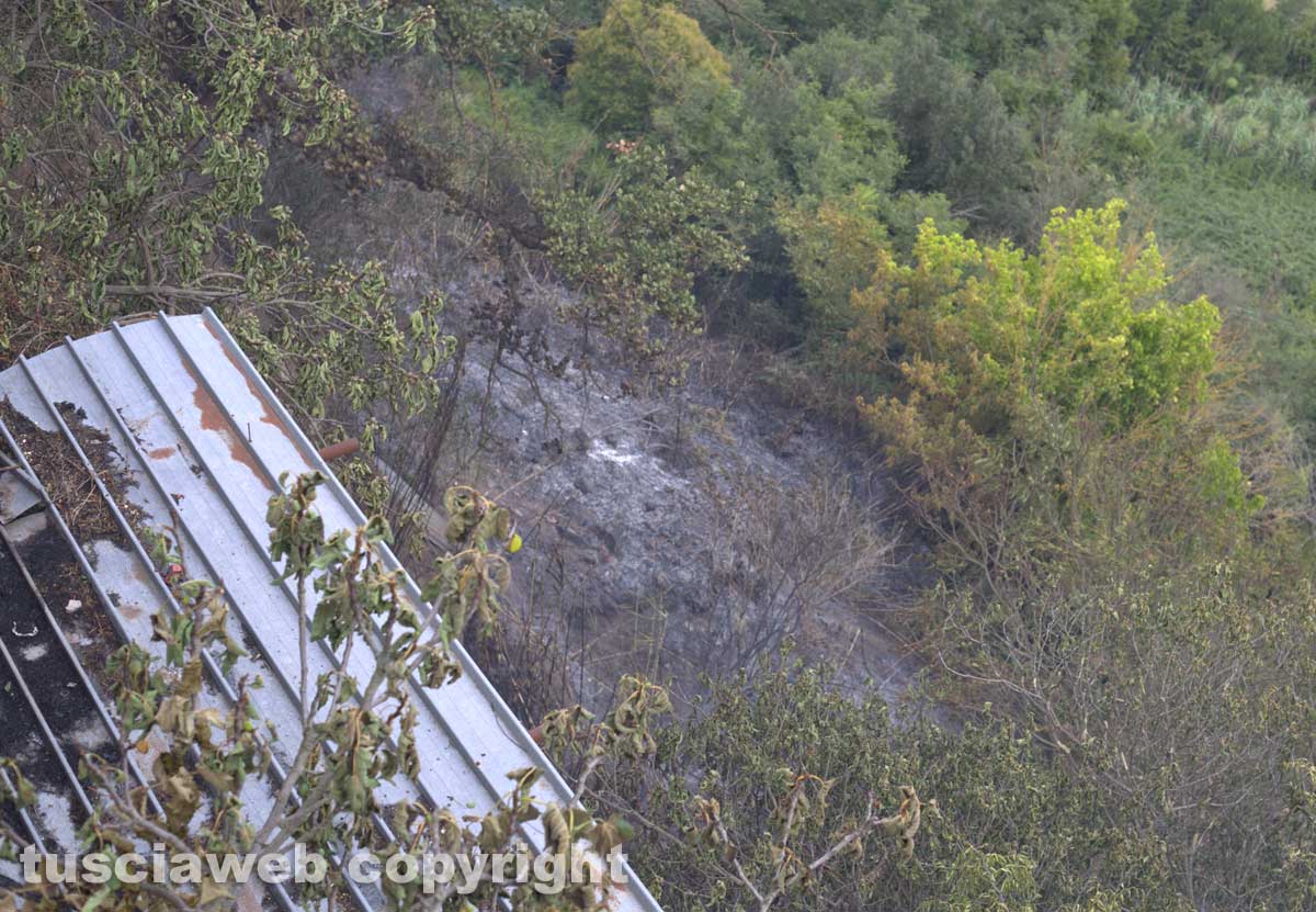Civita Castellana - Sterpaglie in fiamme in via Belvedere Falerii Veteres