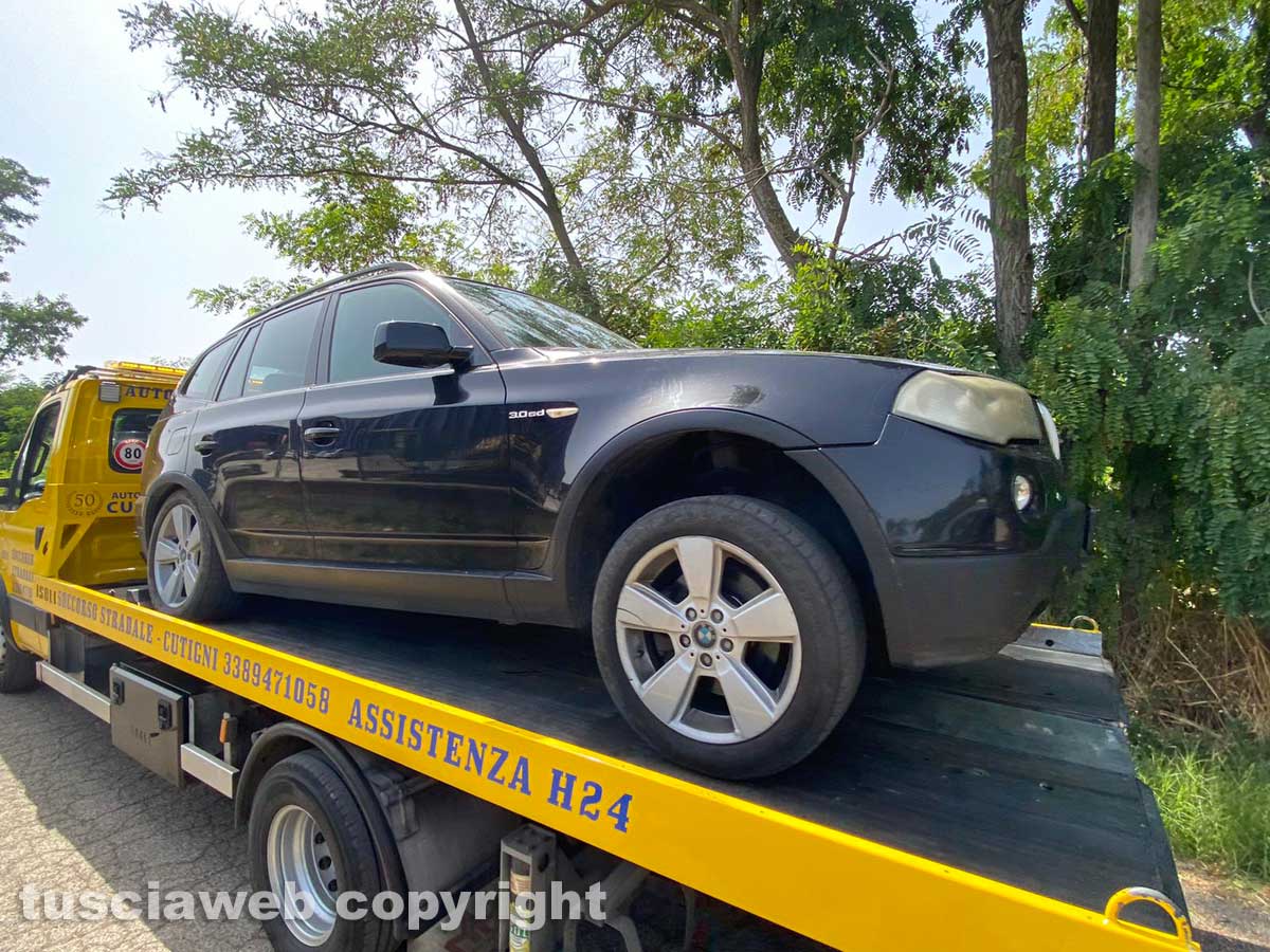 Viterbo – La polizia nel punto in cui i presunti rapinatori hanno abbandonato le auto