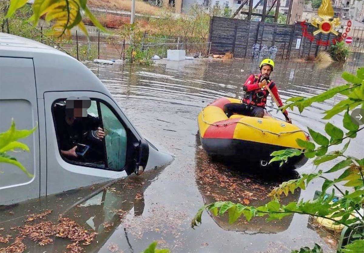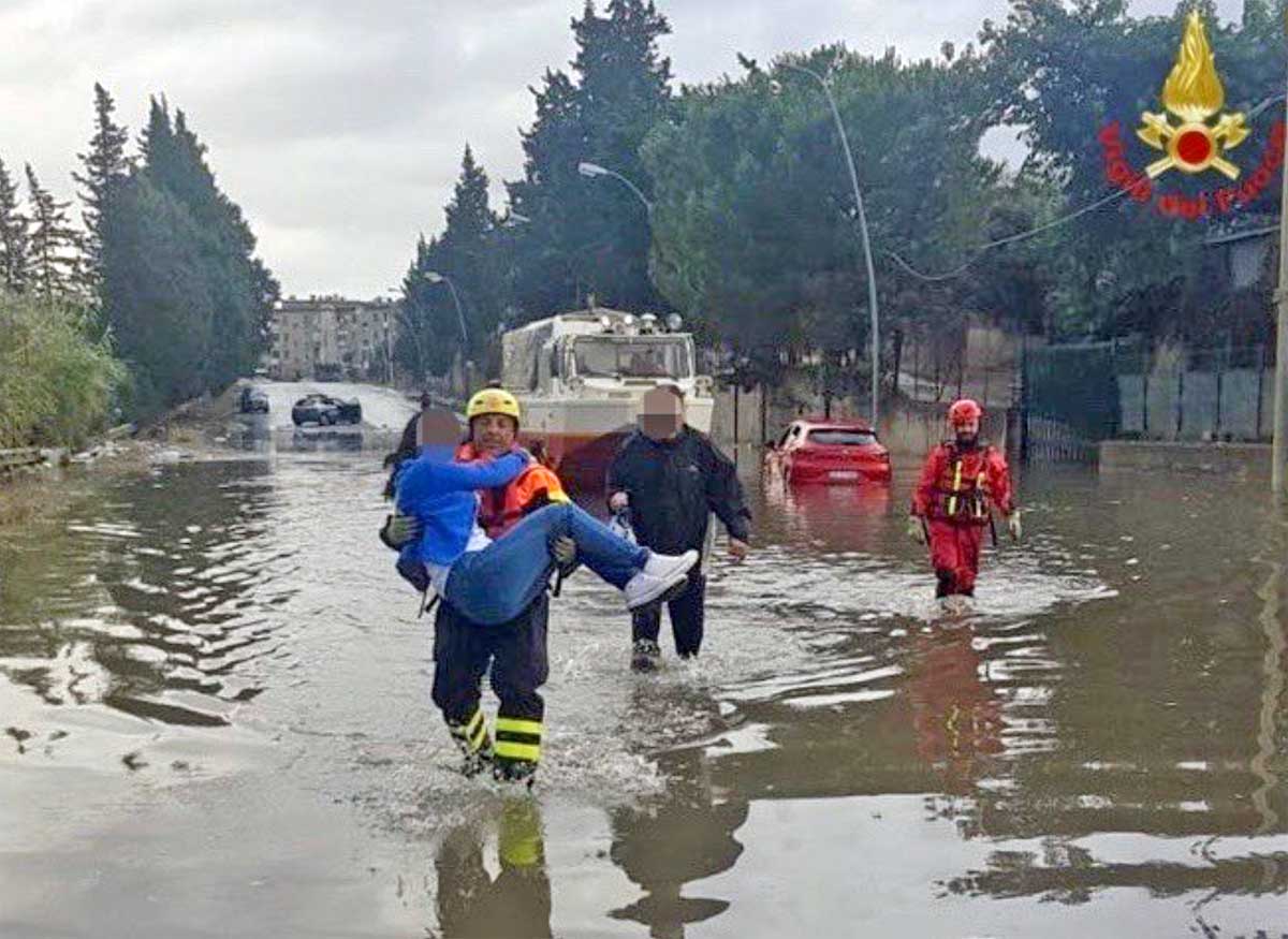 Nubifragio su Palermo – Vigili del fuoco al lavoro