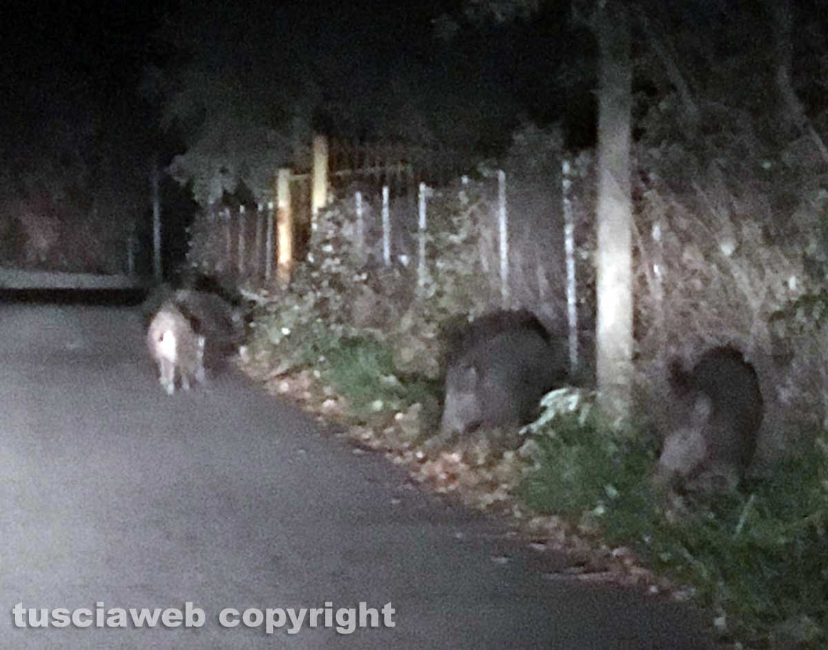 Di notte, dopo il semaforo sulla strada che porta a Belcolle, due bestioni hanno attraversato la strada davanti alla mia auto. Mi sono salvata per miracolo ma un piccolo danno alla macchina l’ho comunque subito.