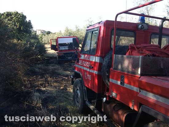 Anche a Tuscania, in particolare dove sorge la sughereta, c’è stato un altro incendio, stavolta solo di sterpaglie che è stato risolto nella mattinata.