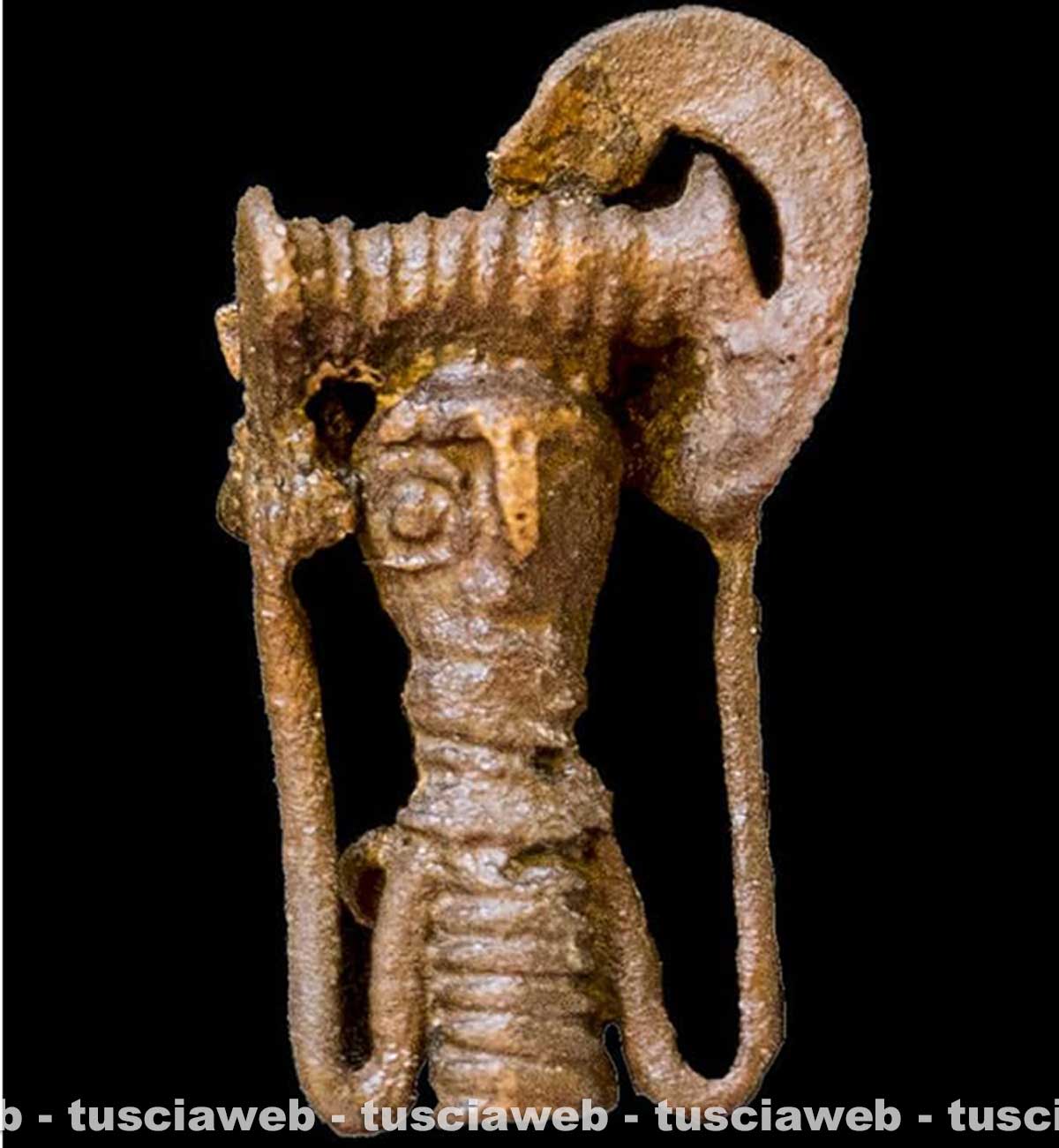 “La figurina di bronzo fusa – viene sottolineato – si inserisce eccezionalmente nello scarso patrimonio finora conosciuto della plastica figurativa protostorica dell’Etruria. Ancora tutta da interpretare la posizione di questo personaggio con corpo e copricapo scanalato, che tiene nelle mani poste al termine delle esili braccia, due oggetti circolari forati dei quali è ancora incerta la connessione con le espansioni laterali del copricapo. Questo presenta un viso e soprattutto una resa degli occhi molto simile ad alcuni bronzetti sardi, con richiami iconografici anche nel geometrico greco, tuttavia l’incredibile importanza del rinvenimento risiede proprio nella sua unicità nel panorama della plastica figurativa villanoviana”.