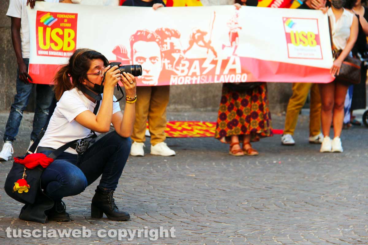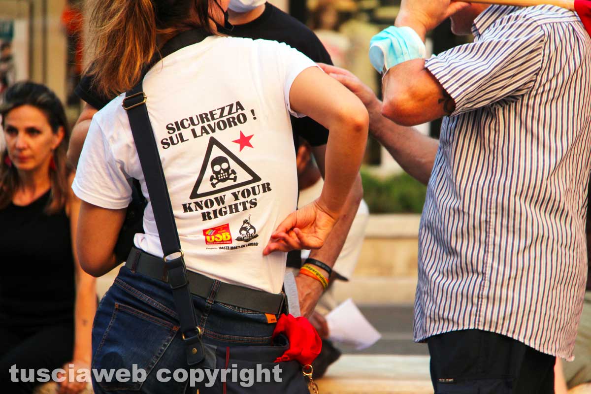 Viterbo – La manifestazione dell’Usb in piazza della Repubblica – L’epigrafe in memoria dei morti di lavoro