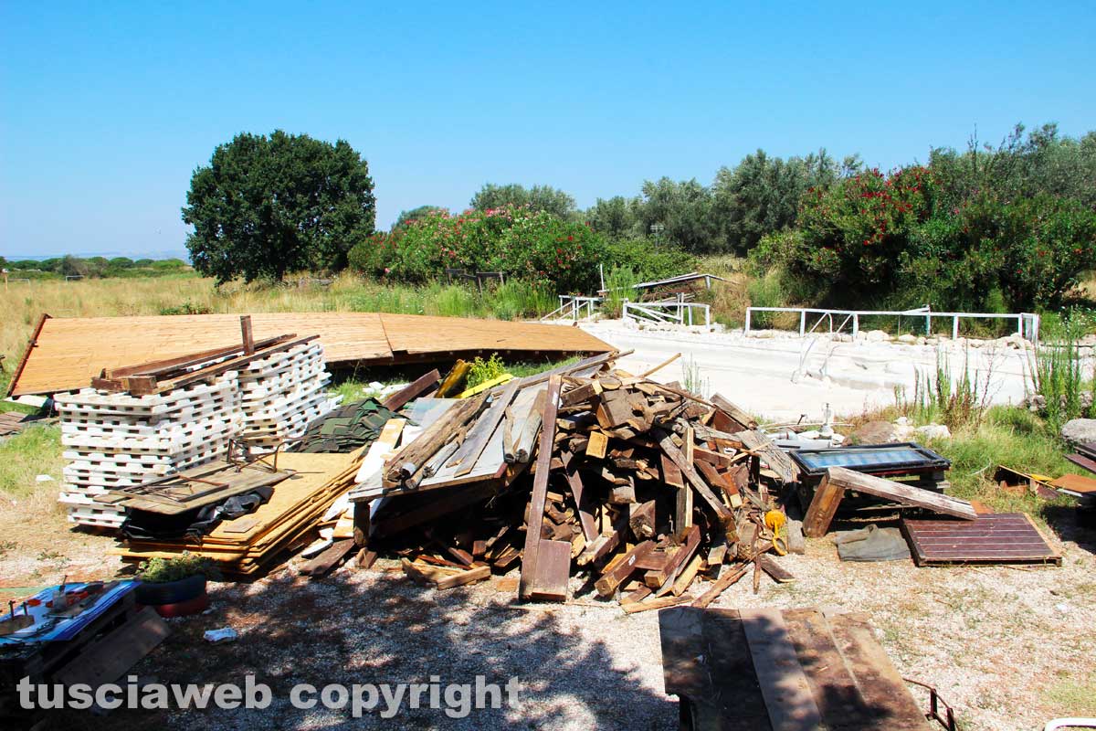 Giovedì scorso, il comune di Viterbo ha dato seguito a un’ordinanza del 2006. E quello che restava delle masse di San Sisto è stato abbattuto e accatastato davanti all’ingresso. Una visione desolante e dolorosa. Drammatica e senza parole. Biglietteria, spogliatoi, bagni, tutto. In giro si vedono anche delle cyclettes e altri oggetti di varia natura. Il tutto in esecuzione di un’ordinanza comunale che risaliva al 2006, ma che non era mai stata applicata. Finché recentemente non è intervenuta la regione Lazio che ha scritto al comune, di fatto obbligandolo. A quindici anni di distanza. Prima però, ci sono stati i contenziosi in tribunale e la chiusura della sorgente. Niente più acqua calda. Dopo secoli. Perché lì c’era un complesso termale d’epoca romana, della prima età imperiale. Sono presenti e visibili i resti lungo la strada.