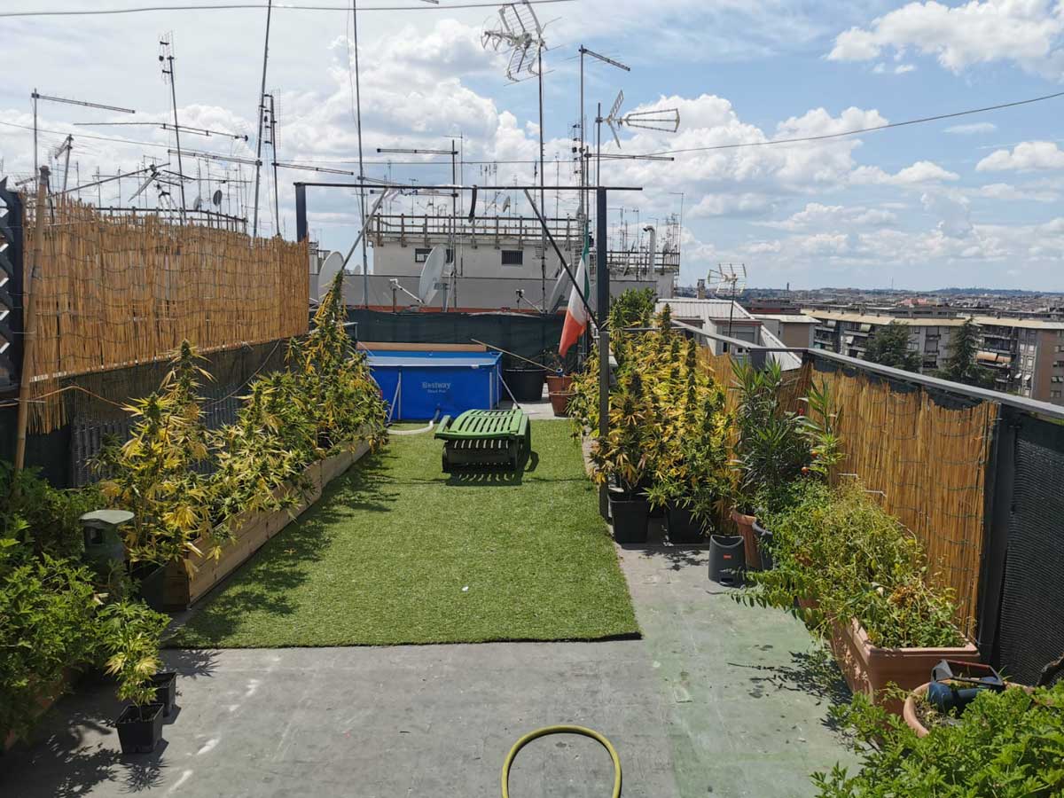 “Aveva allestito un giardino con tanto di piscina e piante di cannabis – spiegano dalla finanza – sulla terrazza di una palazzina di Casal Bruciato un ventottenne, incensurato, arrestato dai finanzieri del comando provinciale di Roma.