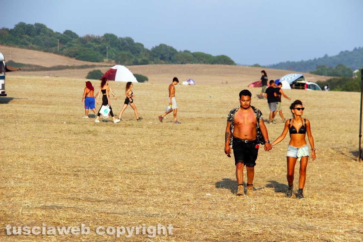 I sentieri intorno alla piana del rave sono diversi. E tutti piuttosto lunghi. Per raggiungere la strada, dall’area in questione, ci sono 6 chilometri di percorsi. Almeno la metà sotto al sole. A picco sulla testa. Ogni tanto qualcuno s’avventura a piedi. Molti desistono quando si accorgono che finita la sterrata ci sono ancora tre chilometri, quasi tutti in salita, prima di raggiungere Valentano. Dovendo, però, prima, aggirare il posto di blocco in fondo alla strada. E l’unica possibilità è tagliare a piedi per le campagne. Che ad agosto è come morire. Una zona che da ieri è stata sostanzialmente chiusa e impacchettata dalle forze dell’ordine.