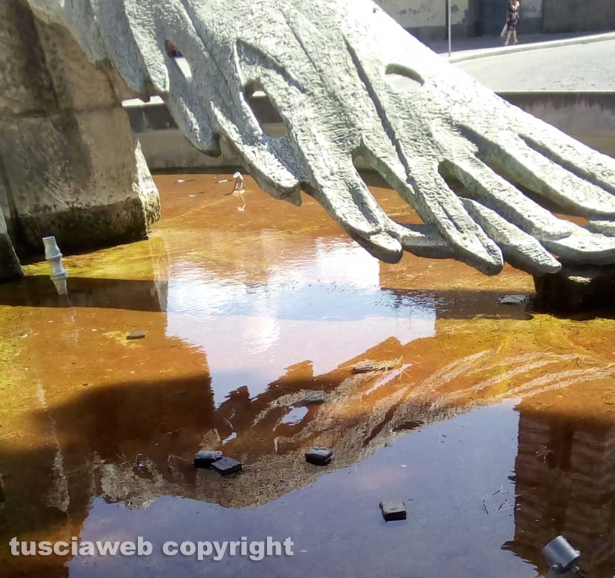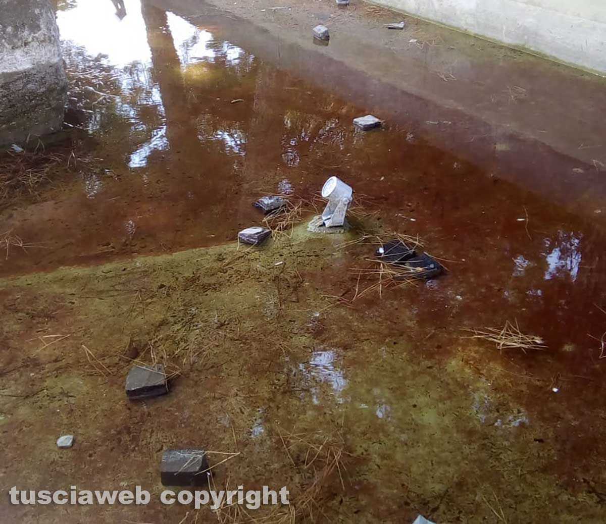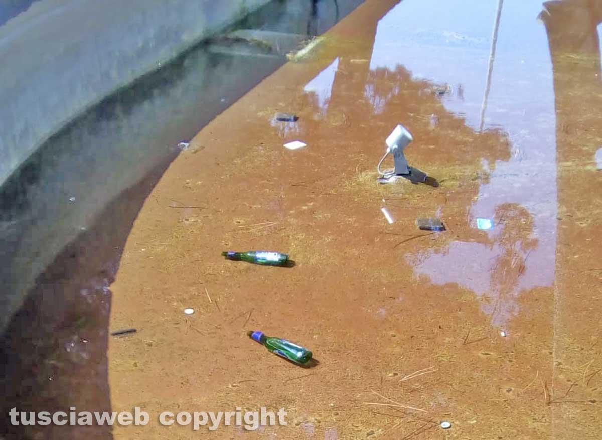 Bottiglie vuote di birra e rifiuti vari vengono lasciati all’interno della vasca, sampietrini tolti dalla strada e gettati all’interno del monumento.