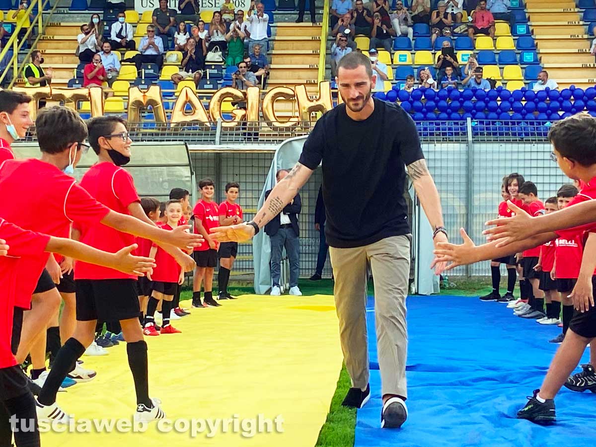 Leonardo Bonucci, campione d’Europa. Ieri pomeriggio allo stadio Rocchi della città in cui è nato e cresciuto. Viterbo, che gli ha reso omaggio lungo tutta un’intera giornata. Il campione, per la città, più importante di sempre. Un esempio sportivo e non solo, come più volte è stato sottolineato.